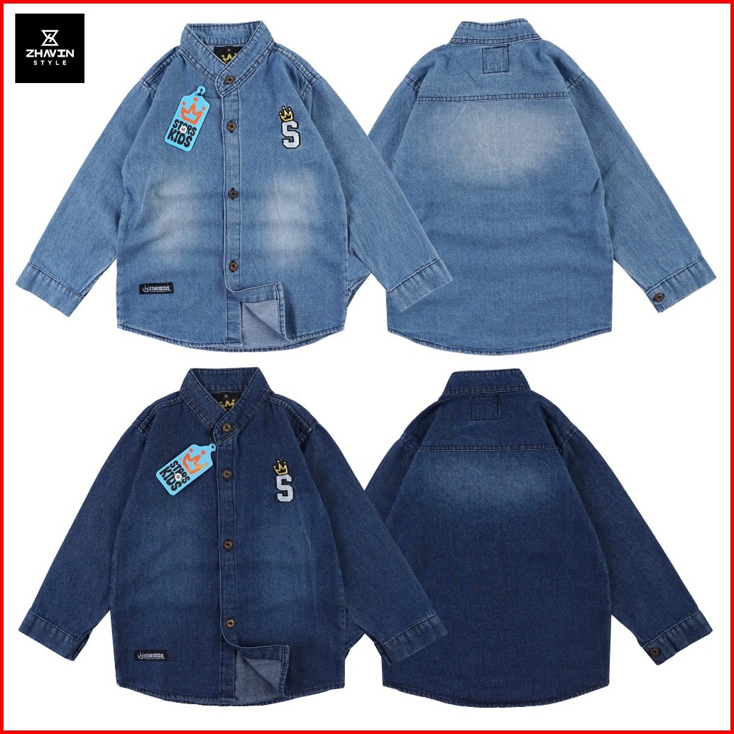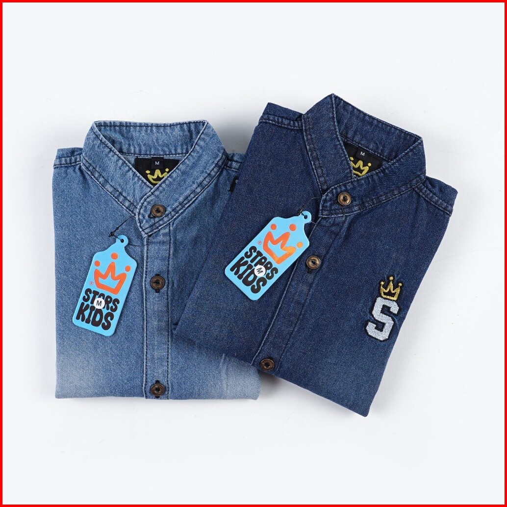 Kemeja Jeans Anak Laki-laki Lengan Panjang Kemeja Jeans Denim Anak Usia 1-12 Tahun