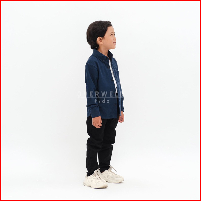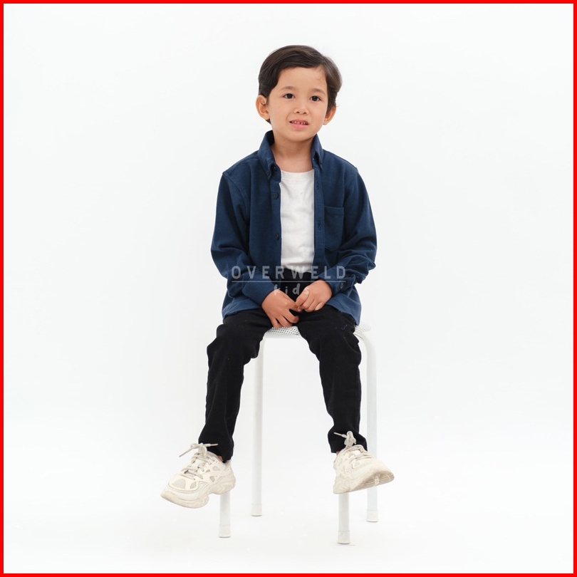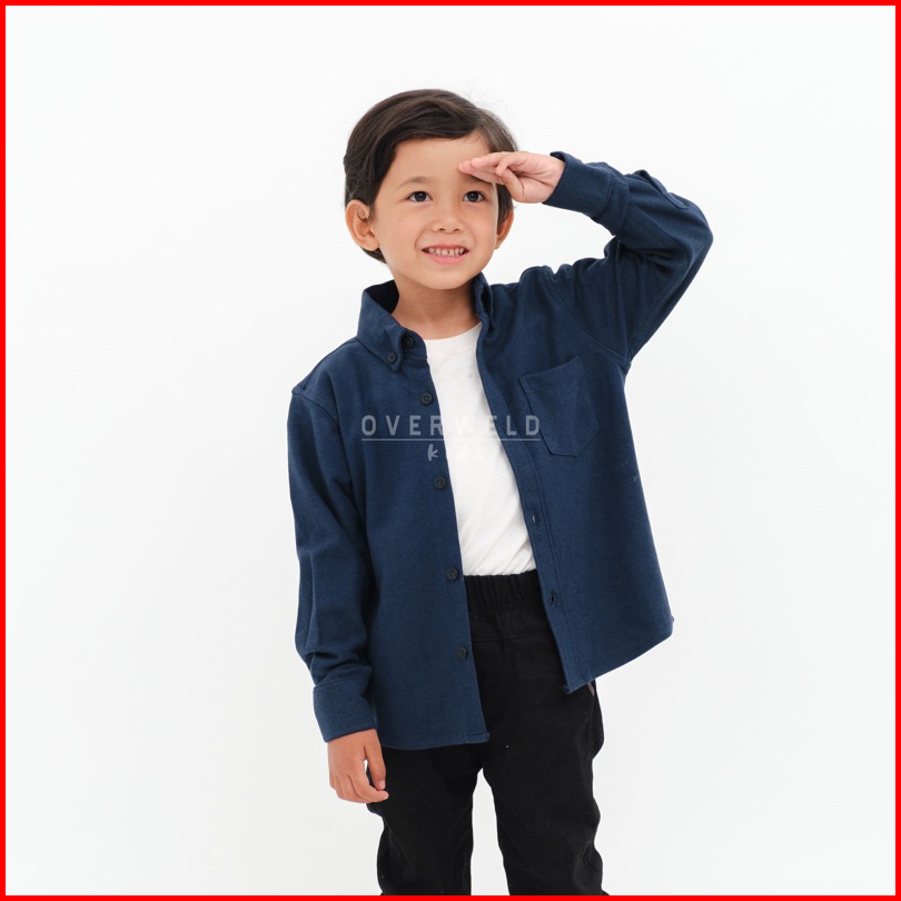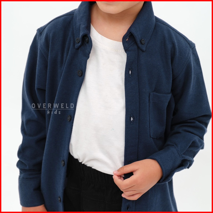Overweld Kids - Kemeja Pique Anak Lengan Panjang Biru Navy Blue Cotton Pique Best Quality
