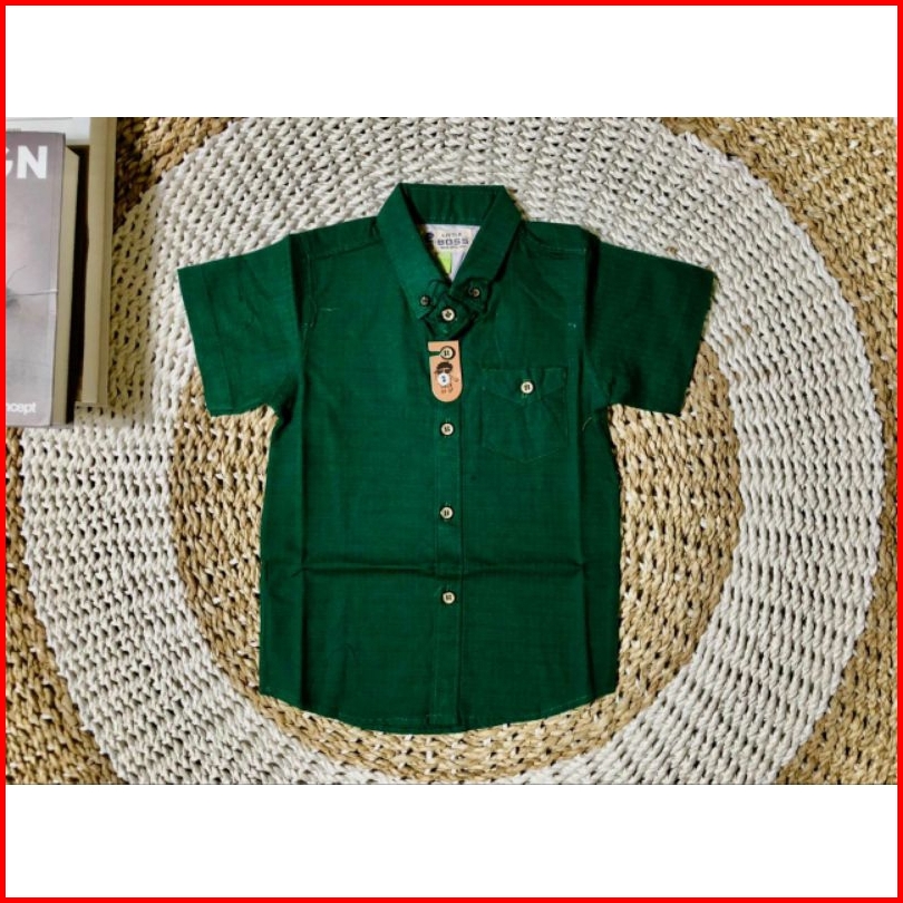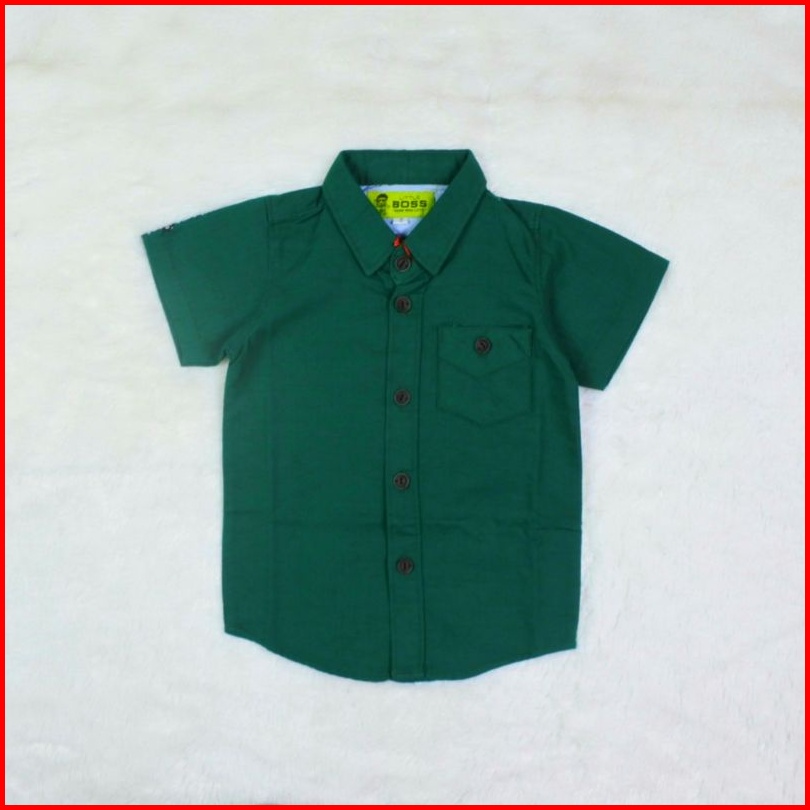 Kemeja Anak Lengan Pendek Bahan Katun Uniqlo Premium Warna Hijau Botol Mewah Little Boss