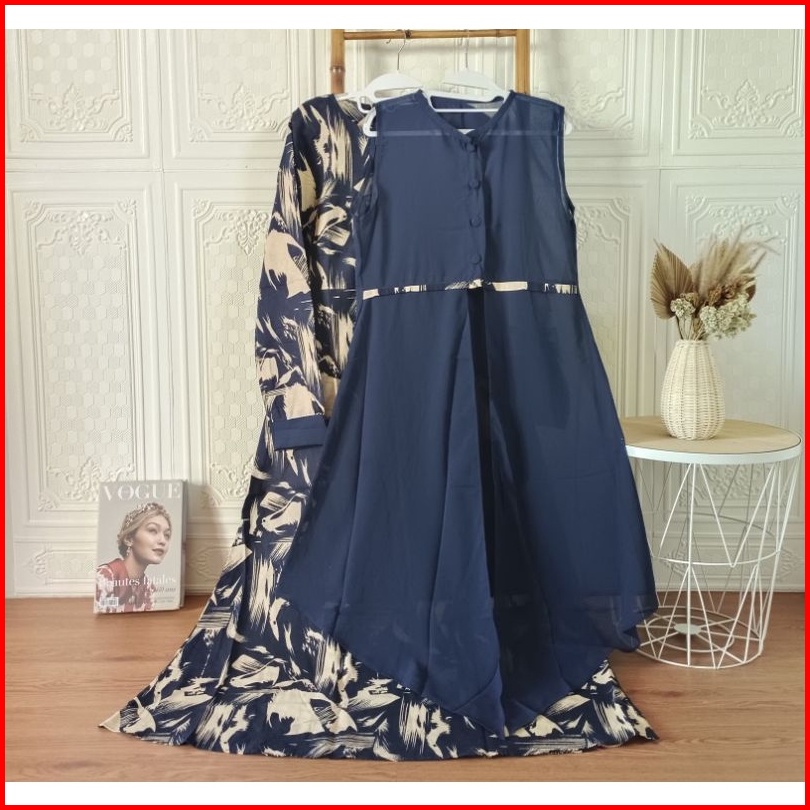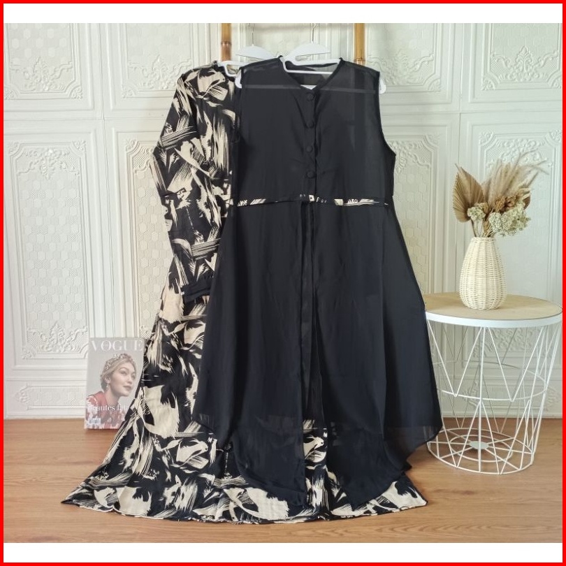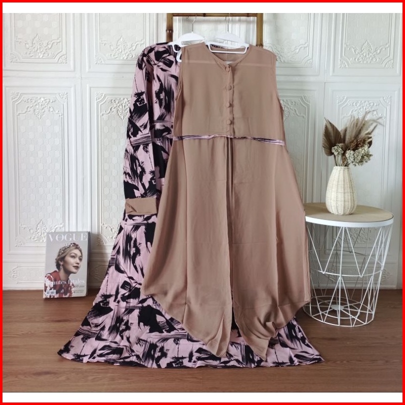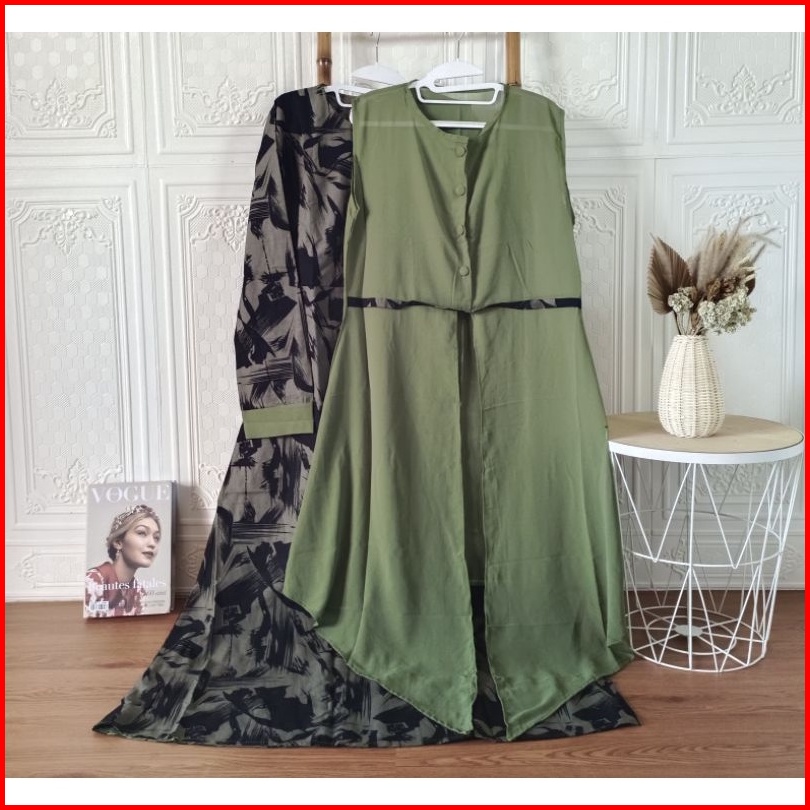 Gamis Set Rompi Linen Mos Crepe Busui