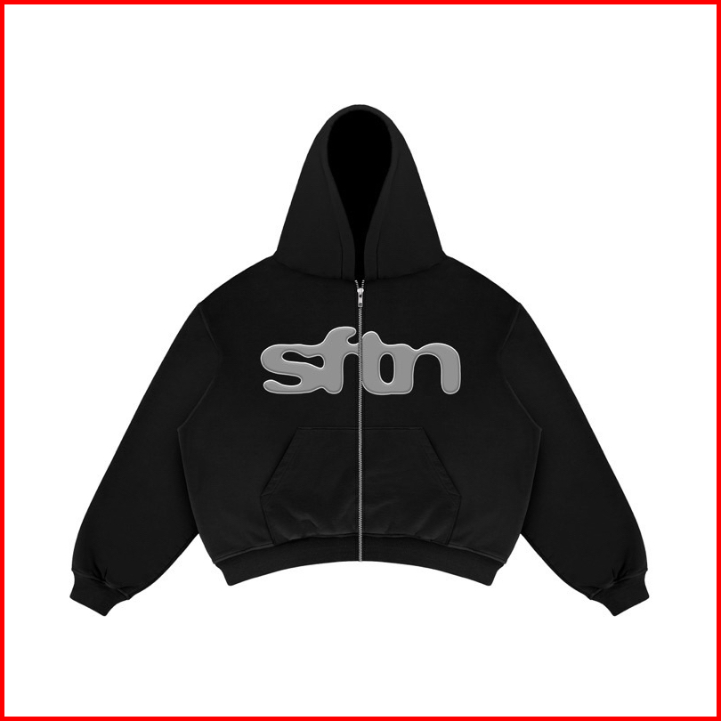 Satisfaction Hoodie Zipper Boxy 375gsm 8 Ball Puff Black