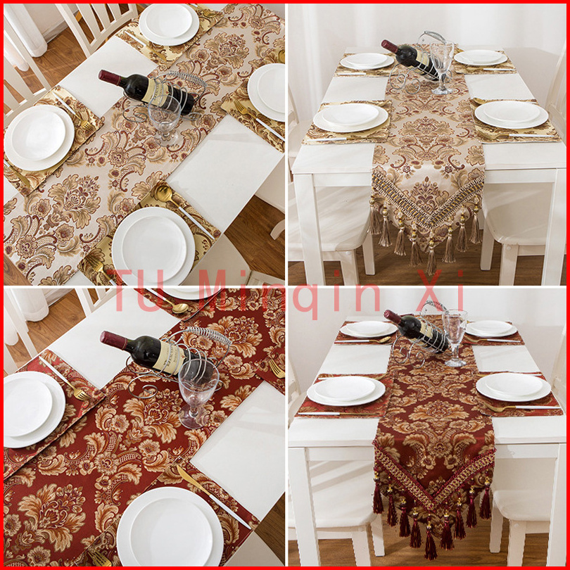 Taplak Meja Persegi Panjang Gaya Istana Retro Kerajinan Kelas Berat Bendera Meja European Table Runner Taplak Meja Tamu