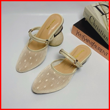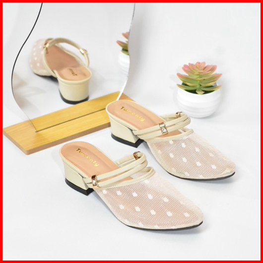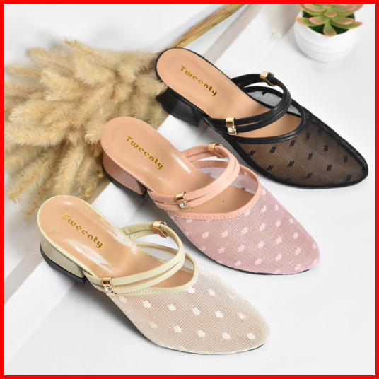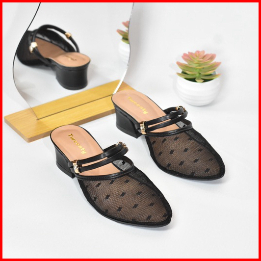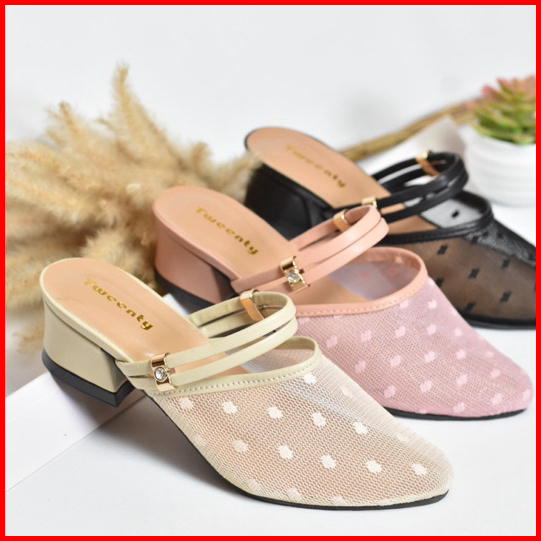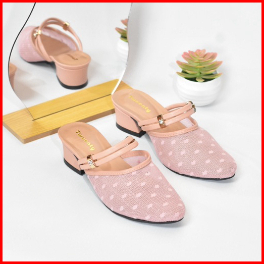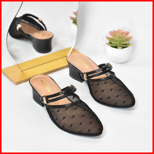 Sandal Pesta Anak Perempuan Brukat Hak Tahu 3cm Motif Pita Kekinian