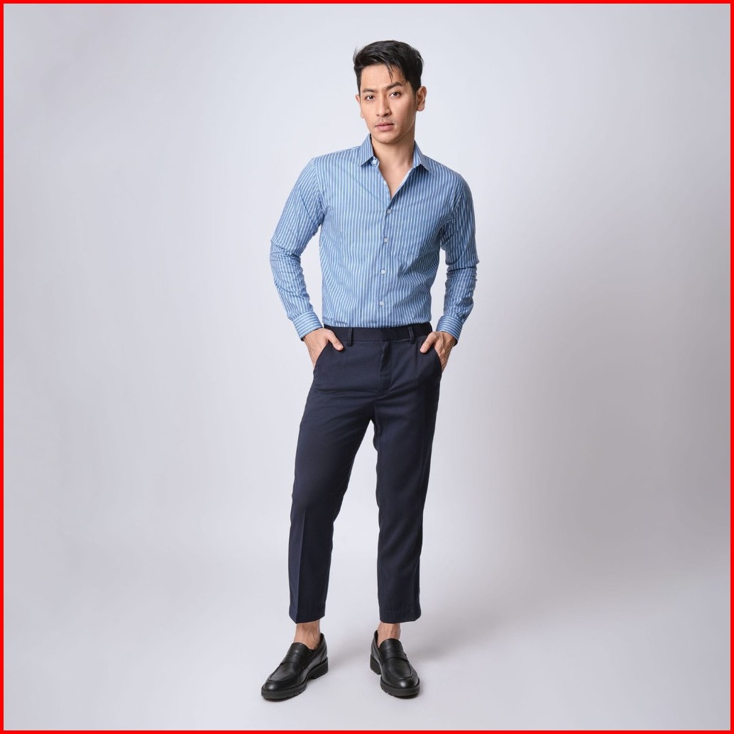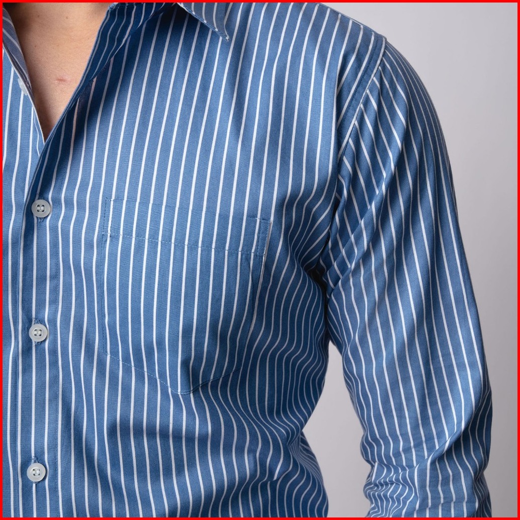 Vengoz Kemeja Pria Slim Fit - Hugo Stripe Shirt Blue Sky Ls
