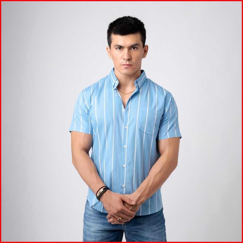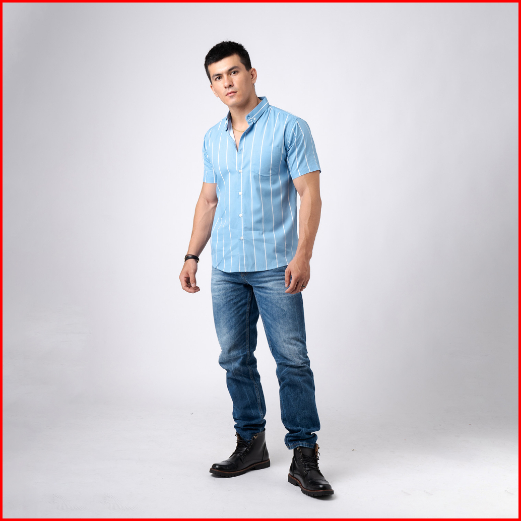 Vengoz Atasan Kemeja Pria Slim Fit - Vicente Stripe Blue Sky Ss