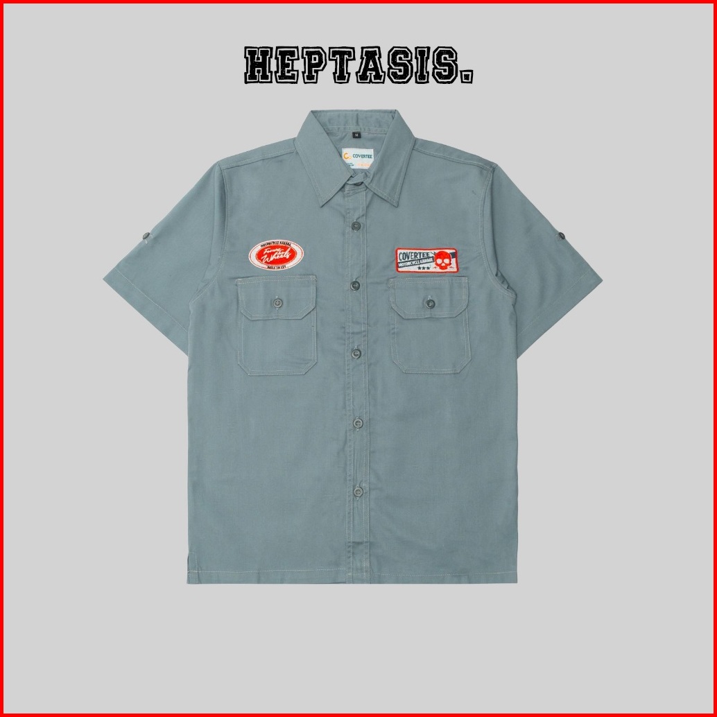 Wolv Kemeja Pria Workshirt Kemeja Kerja Light Blue