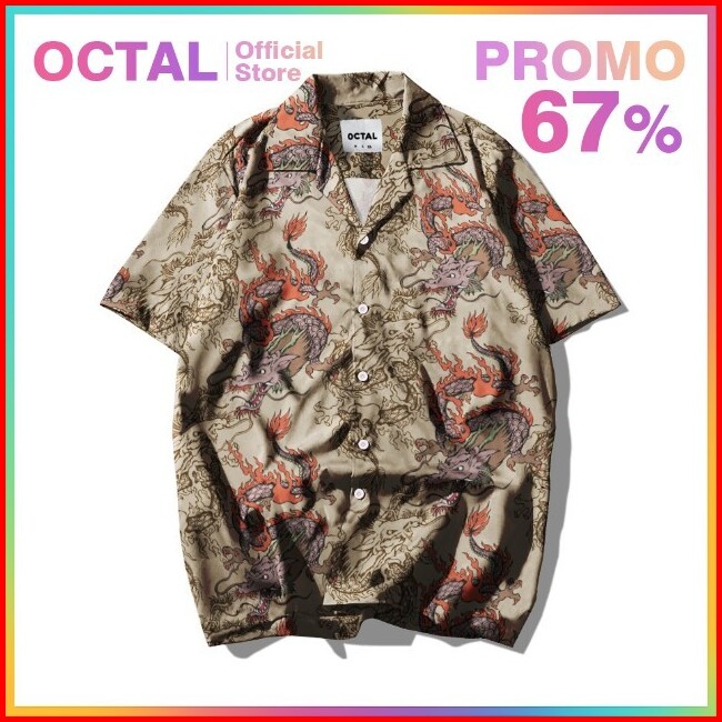 Octal - Kemeja Motif Pattern Pantai Printing Kasual Pria - Wanita Kmp-0230