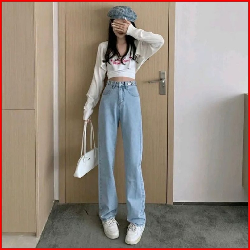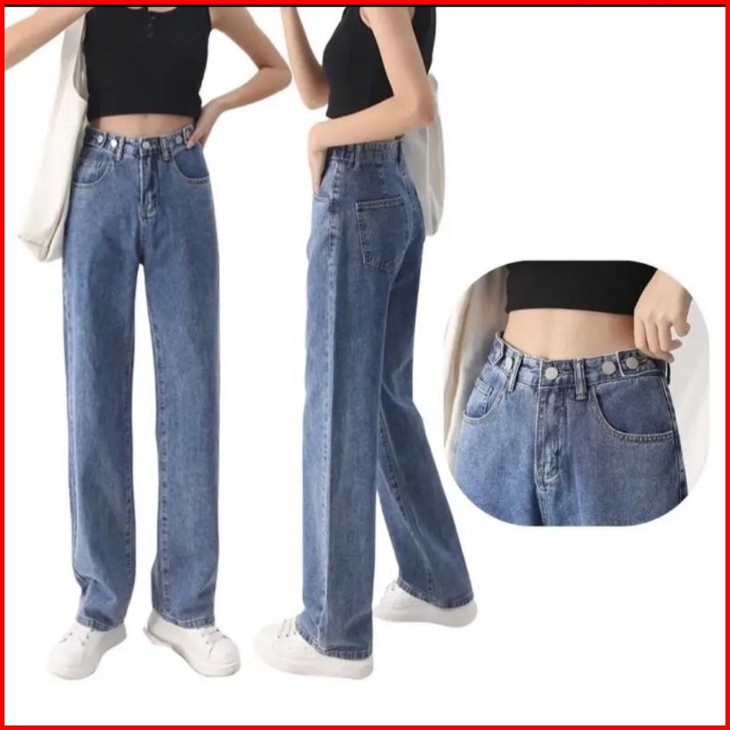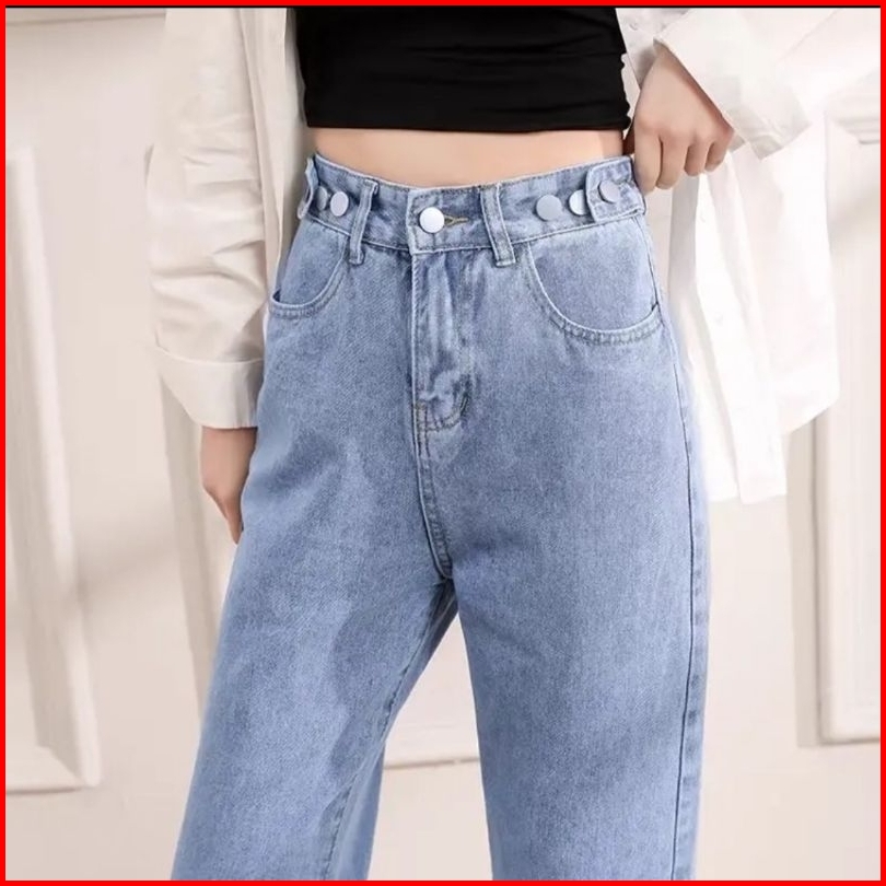 Celana Highwaist Jeans Kulot Wanita Pinggang Kancing Yang Dapat Di Sesuaikan