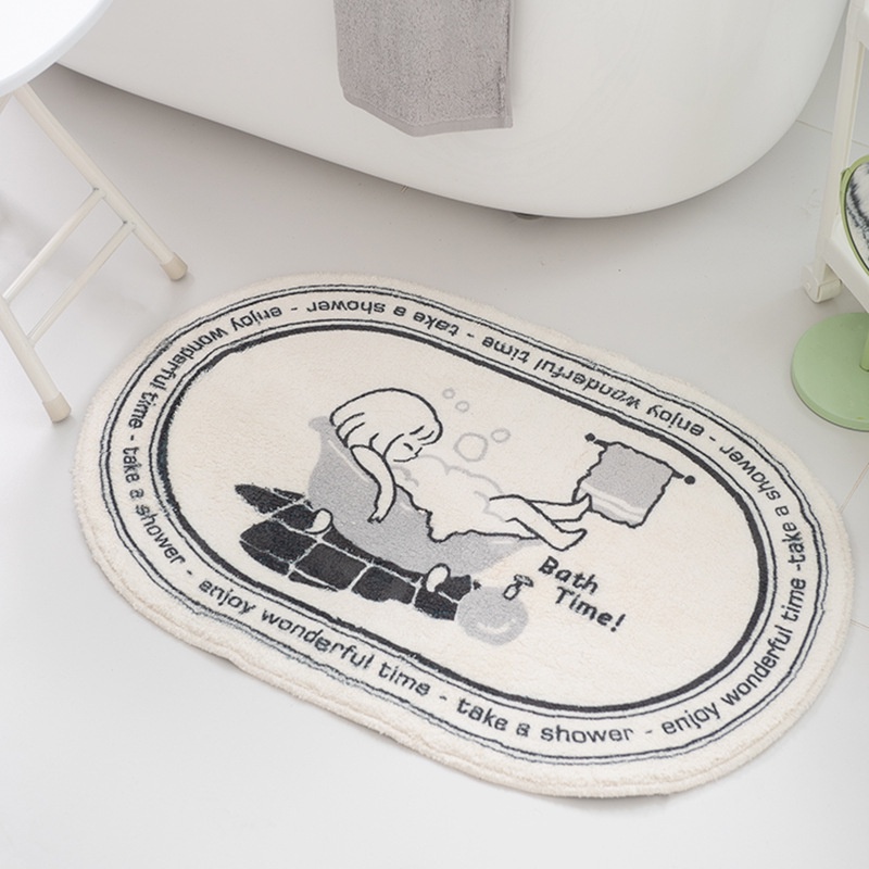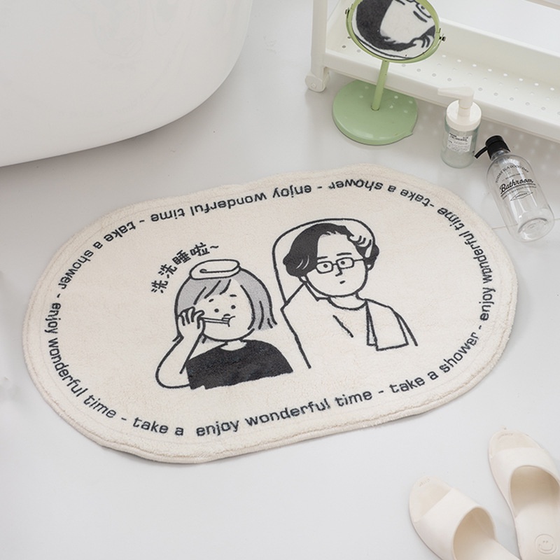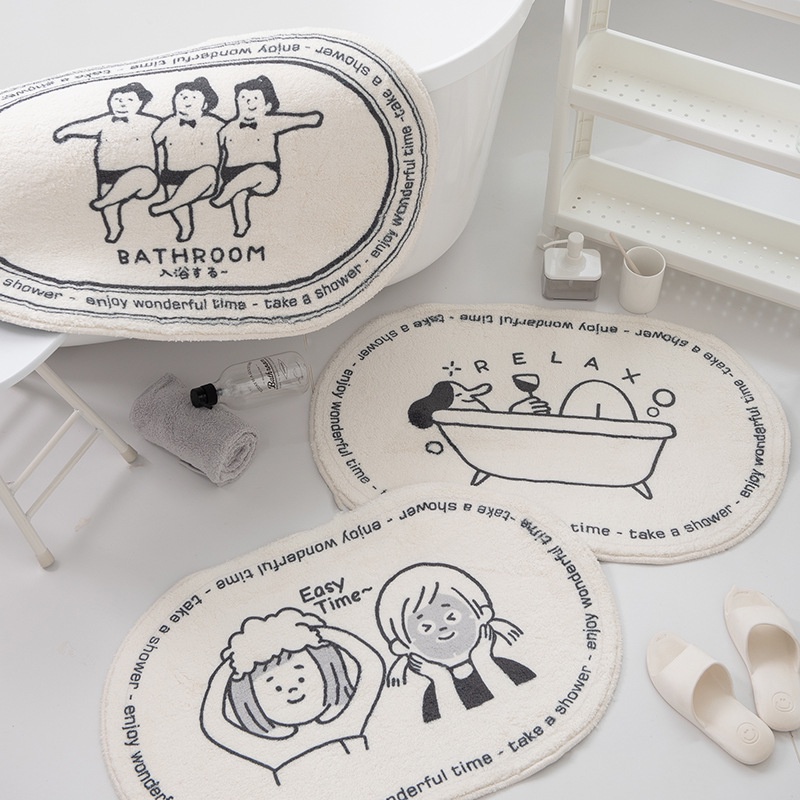 [JAFA] FRITH Keset Kaki Gambar Bak Mandi Nyerap Air 40x60cm Rumah Non Slip Kamar Mandi Japanese Jepang Korea Cartoon Illustration Ellipse Floor Mat Bathroom Anti Slip