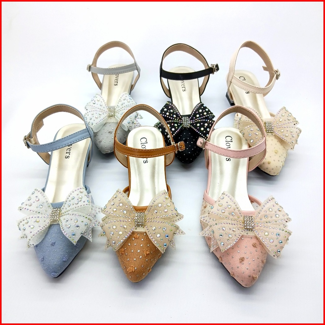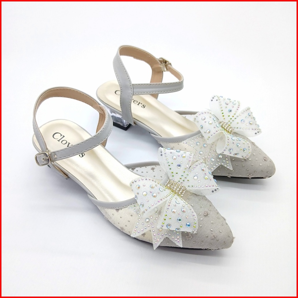 Clover 404 Kids Sandal Anak Perempuan Brukat Wanita Sandal Pesta Hak Kaca 3cm