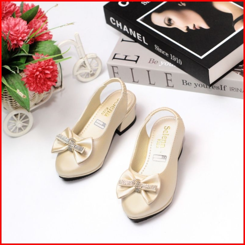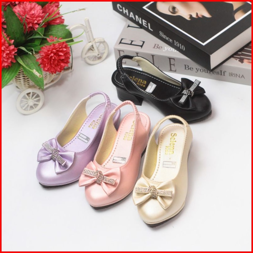 Sepatu Sandal Pesta Anak Perempuan Hak Tahu Pita Permata Karet Kagura Kp13