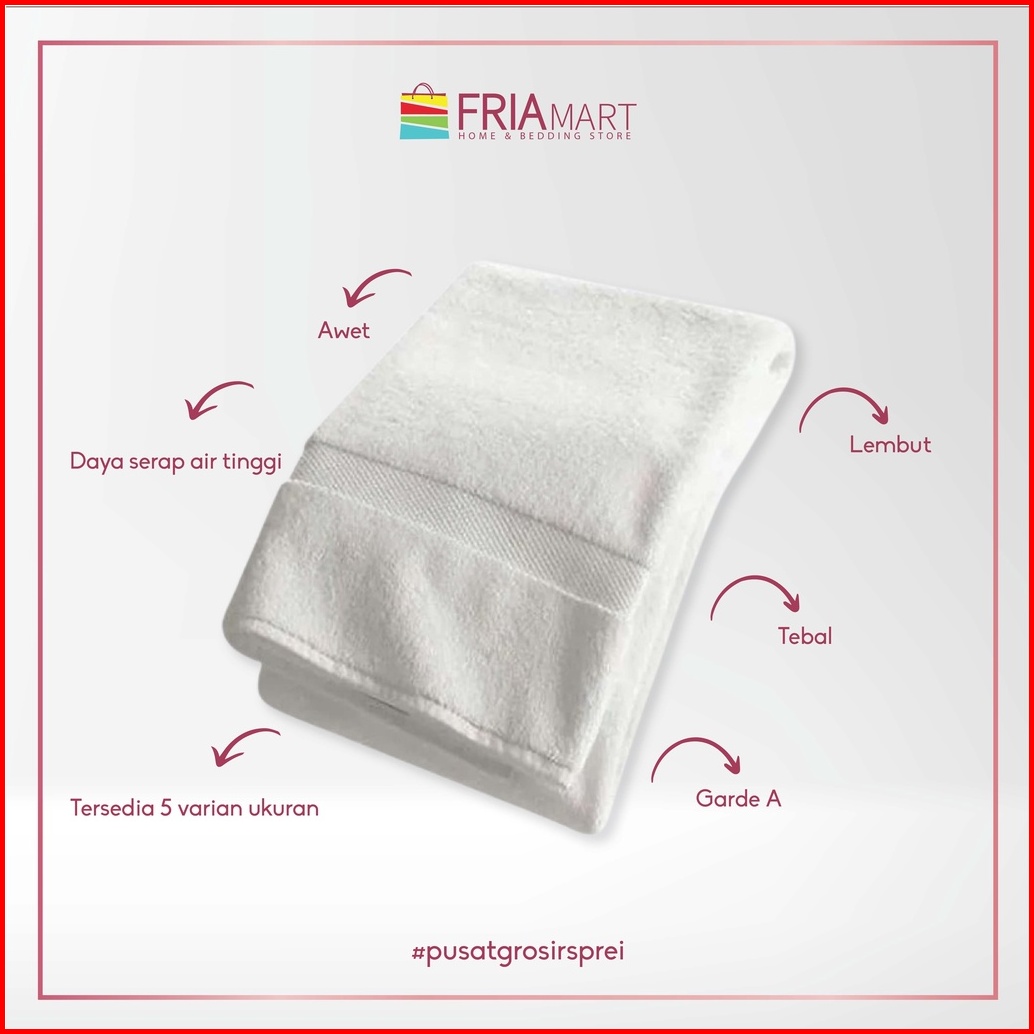 Mutia Handuk Mandi Dewasa 70x140 70x135 Jumbo Putih Polos Handuk Hotel Tebal Grade A Murah Friamart