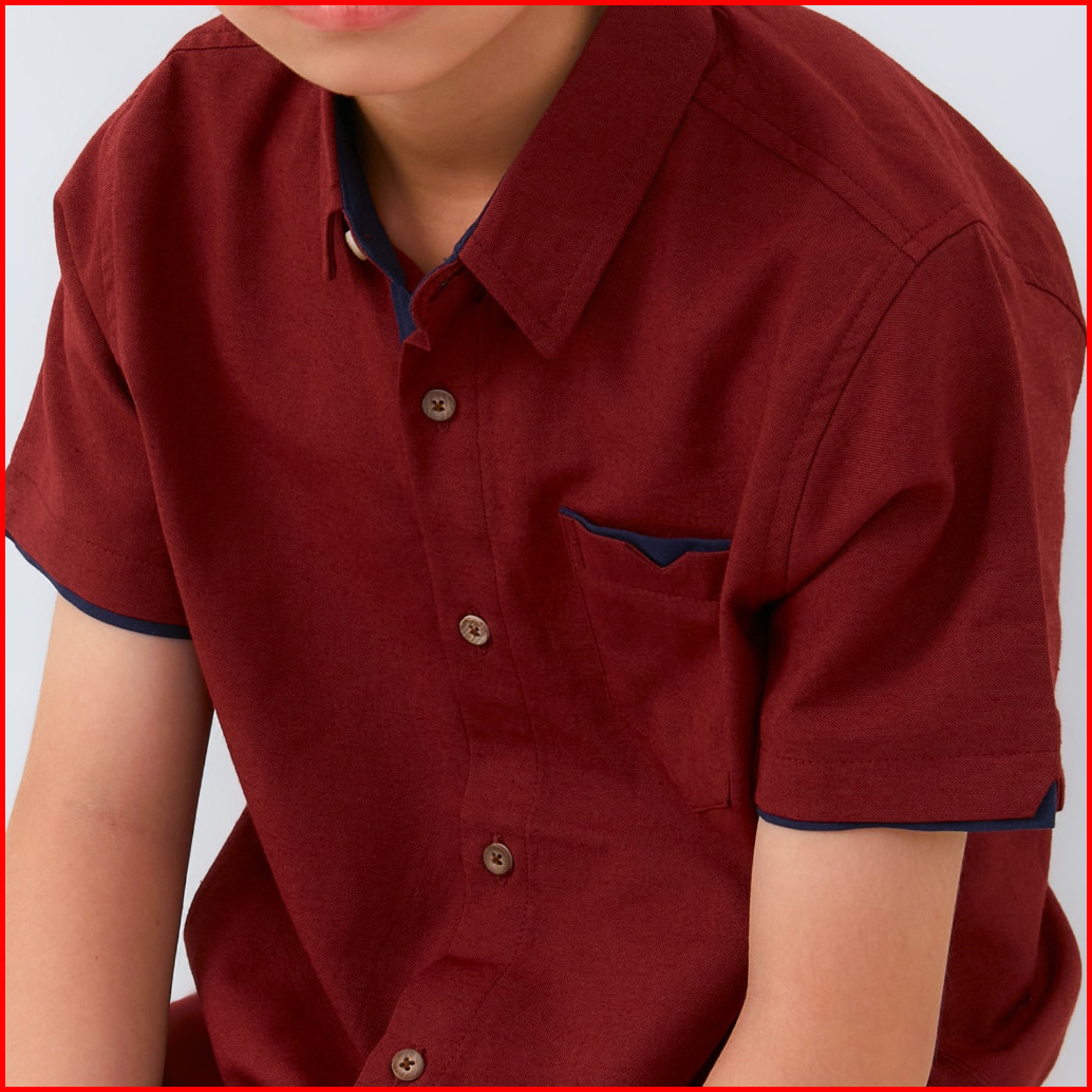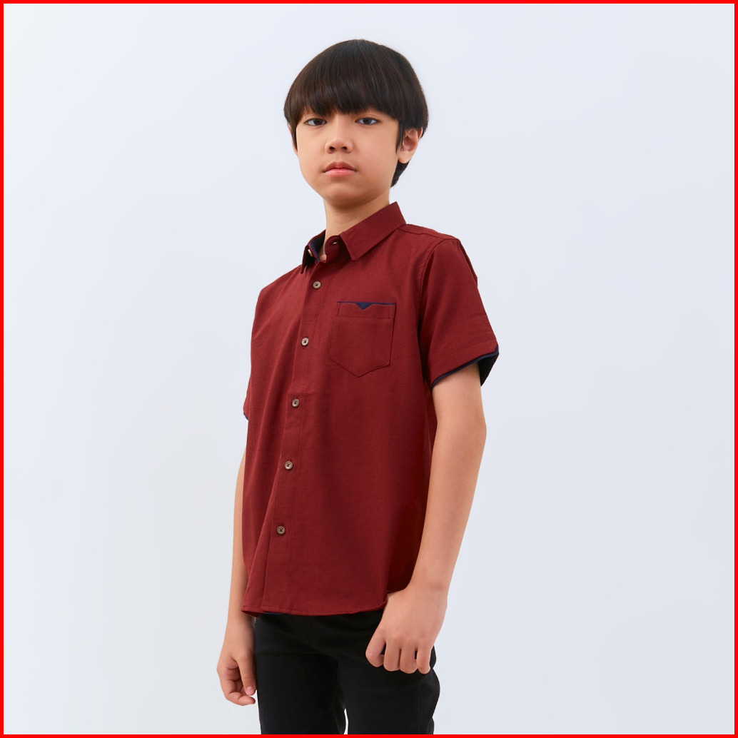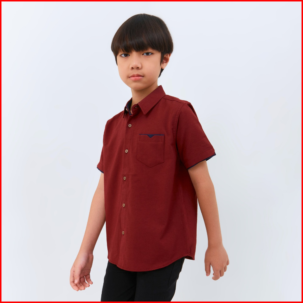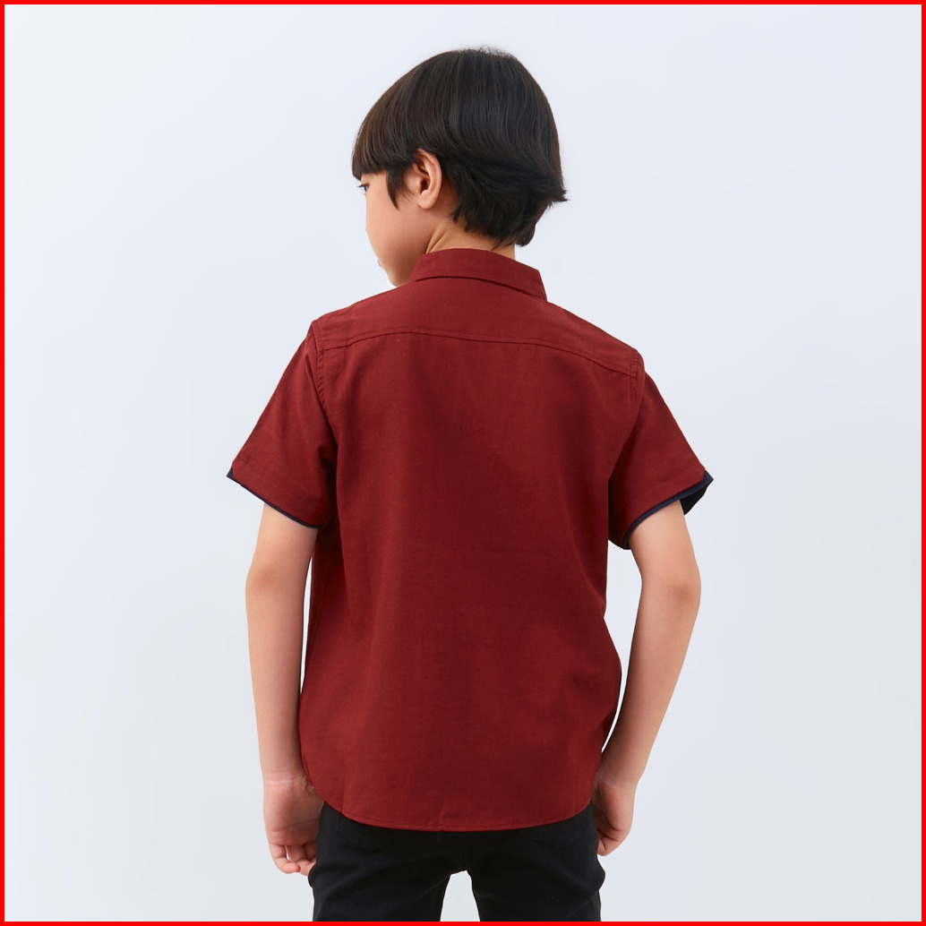 M231 Kemeja Anak Laki Laki Basic Polos Pendek Maroon 2837c