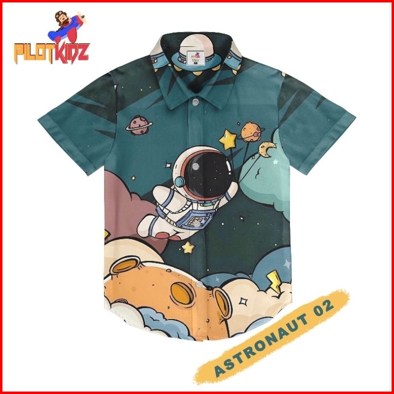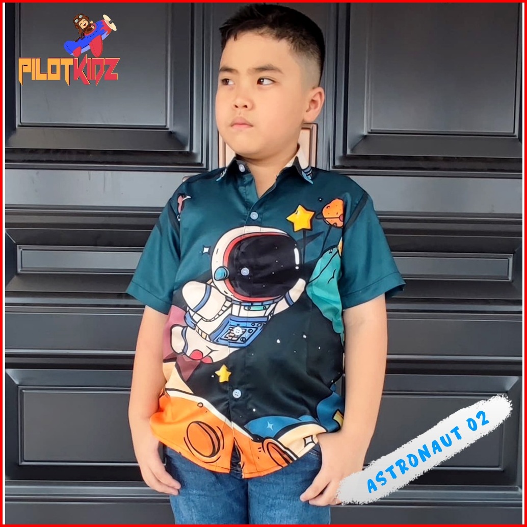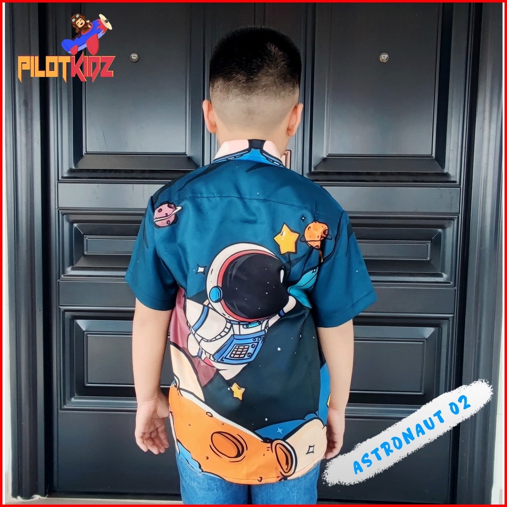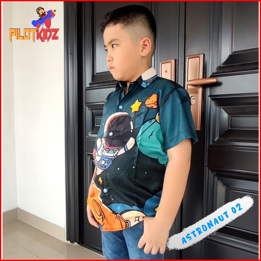 Kemeja Anak Motif Astronot 02 Bahan Shaquilla Twill