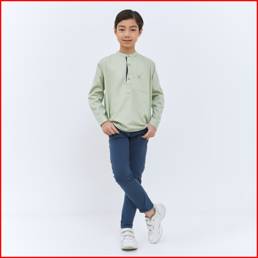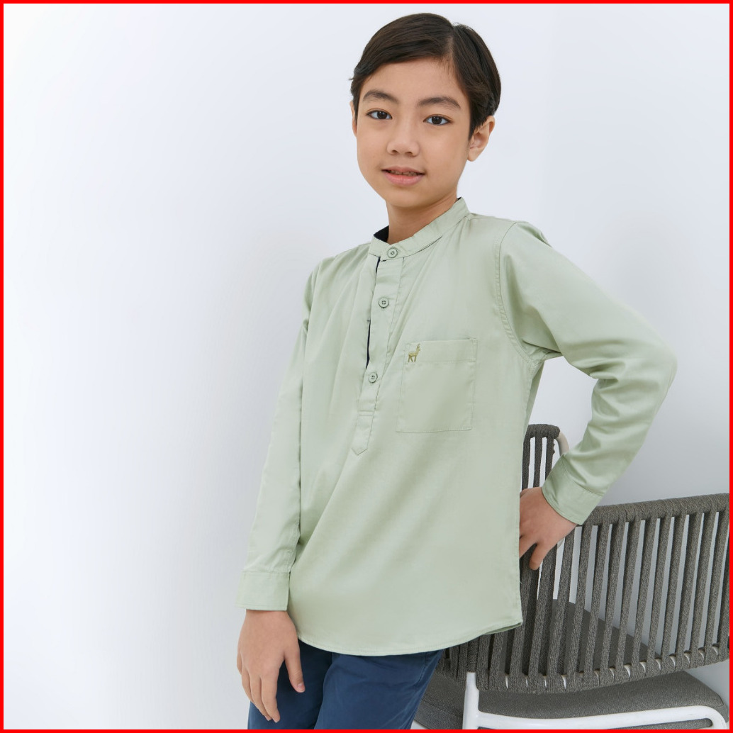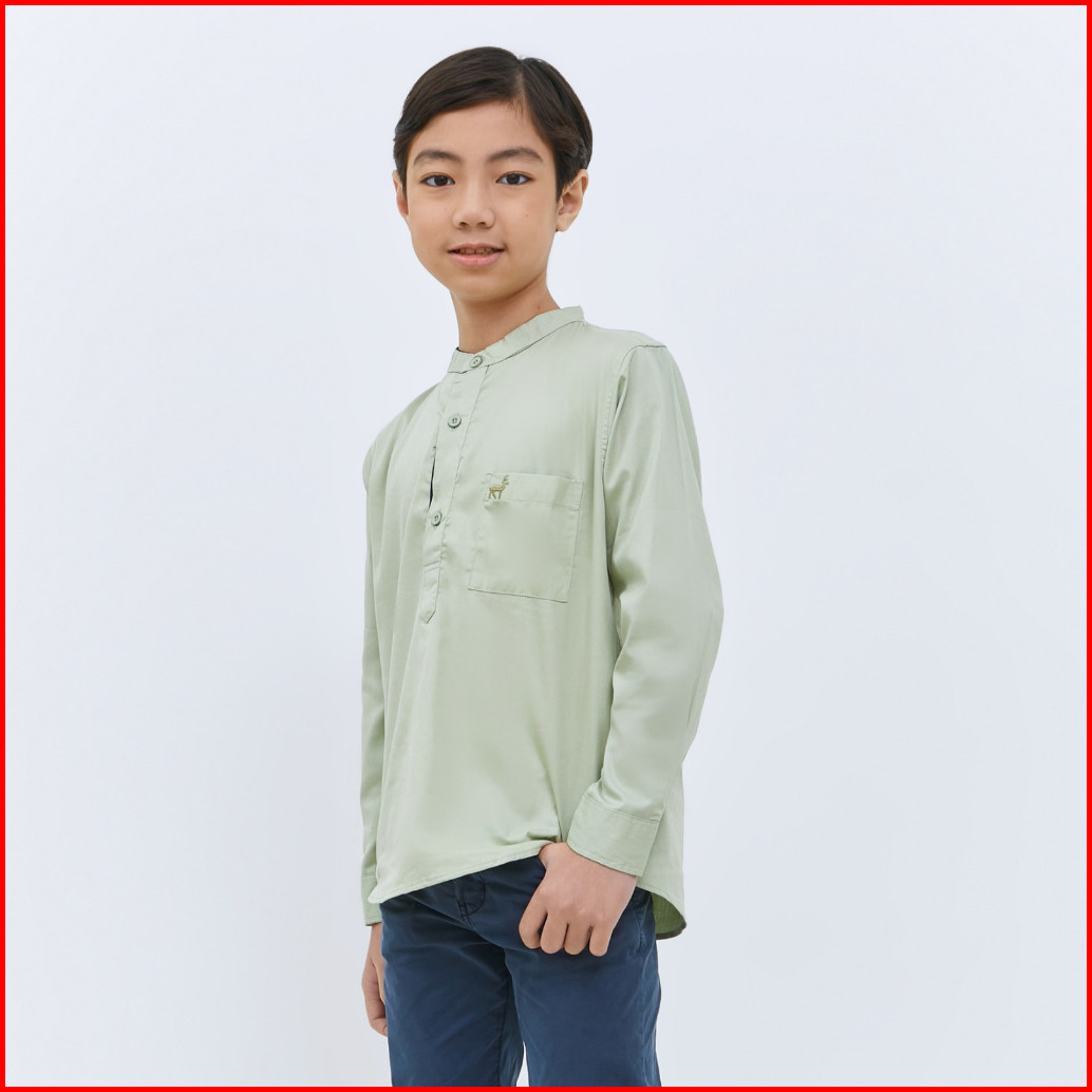 M231 Kemeja Anak Laki Laki Koko Shanghai Polos Panjang Hijau Muda 0436e