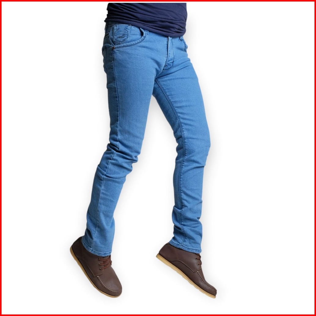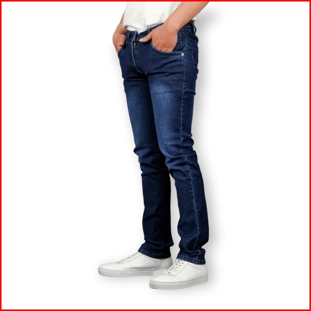 Zweckout Label - Celana Jeans Panjang Pria Slim Fit Cowok Skinny Blue Washing Denim