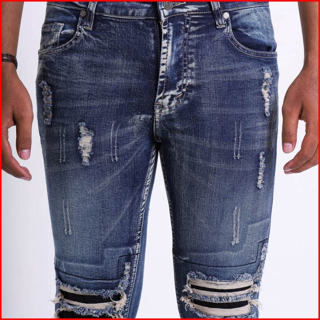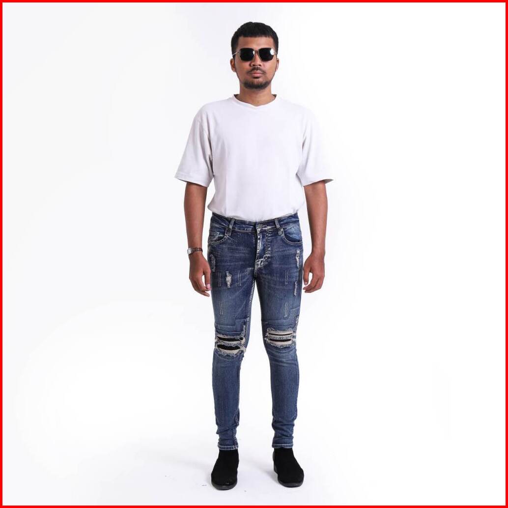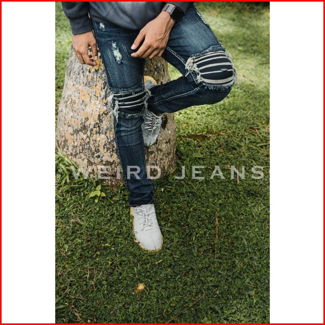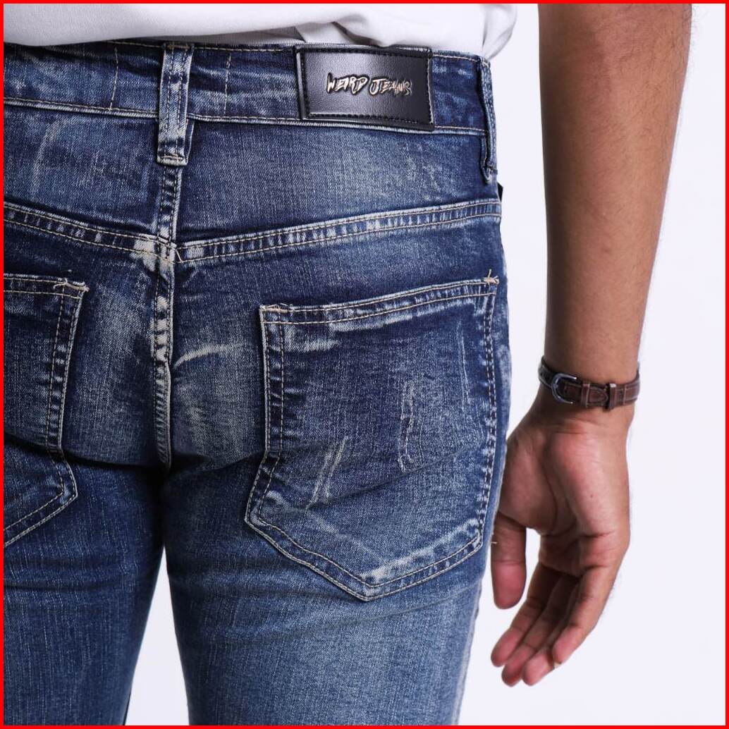 Weird Jeans - Blue Fallen - Celana Panjang Jeans Pria Sobek Tambal Strech Denim