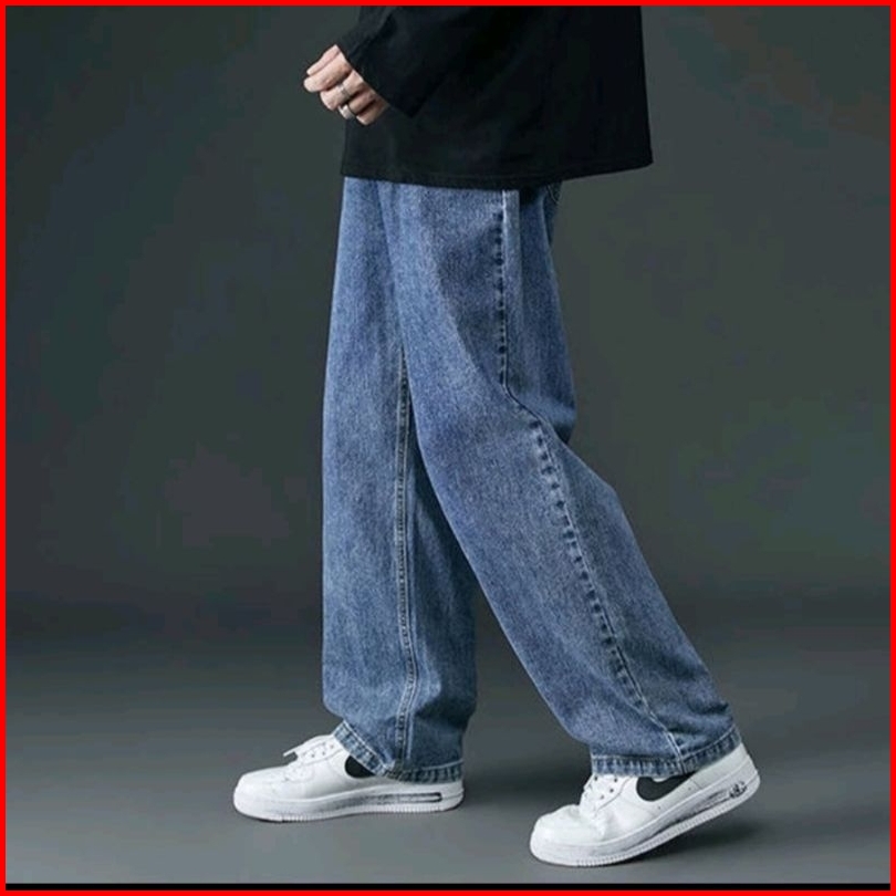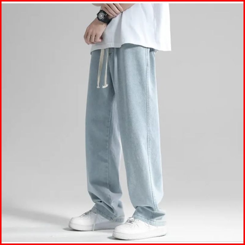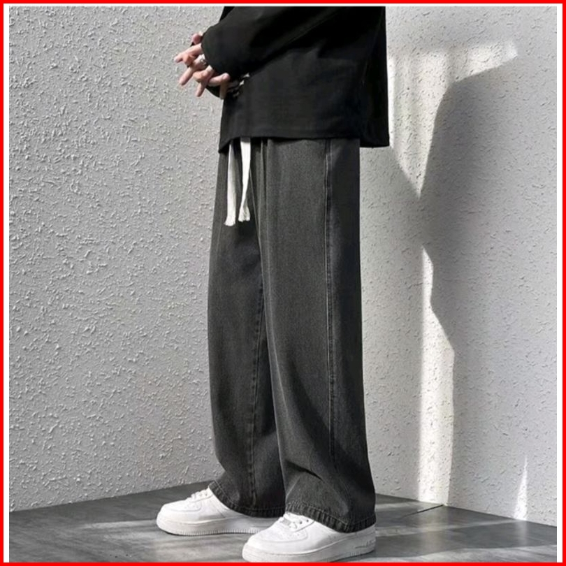 Celana Jeans Pria Celana Panjang Pria Pinggang Karet Korean Style Celana Jins Pria Baggy Pants Celana Gombrang Pria