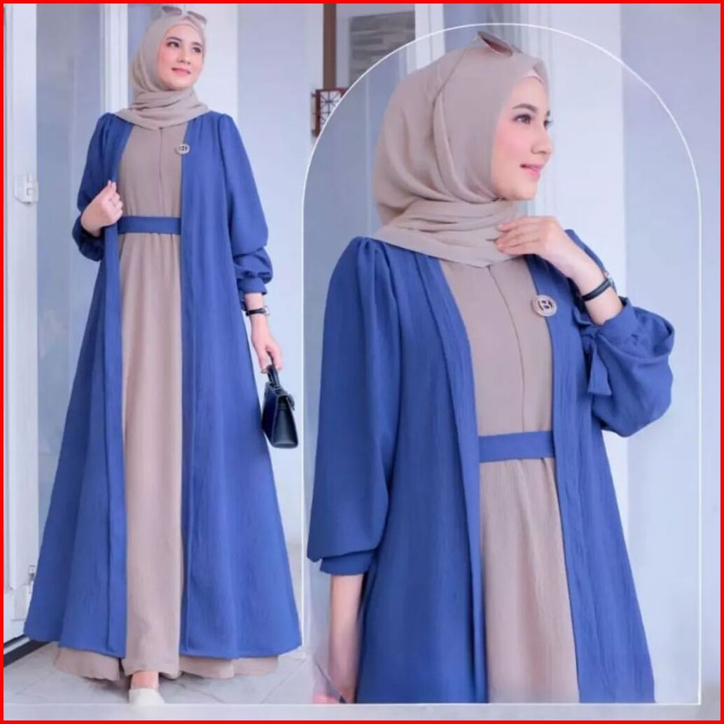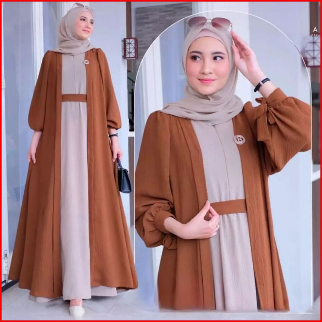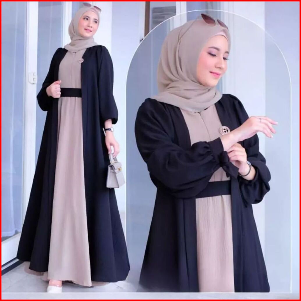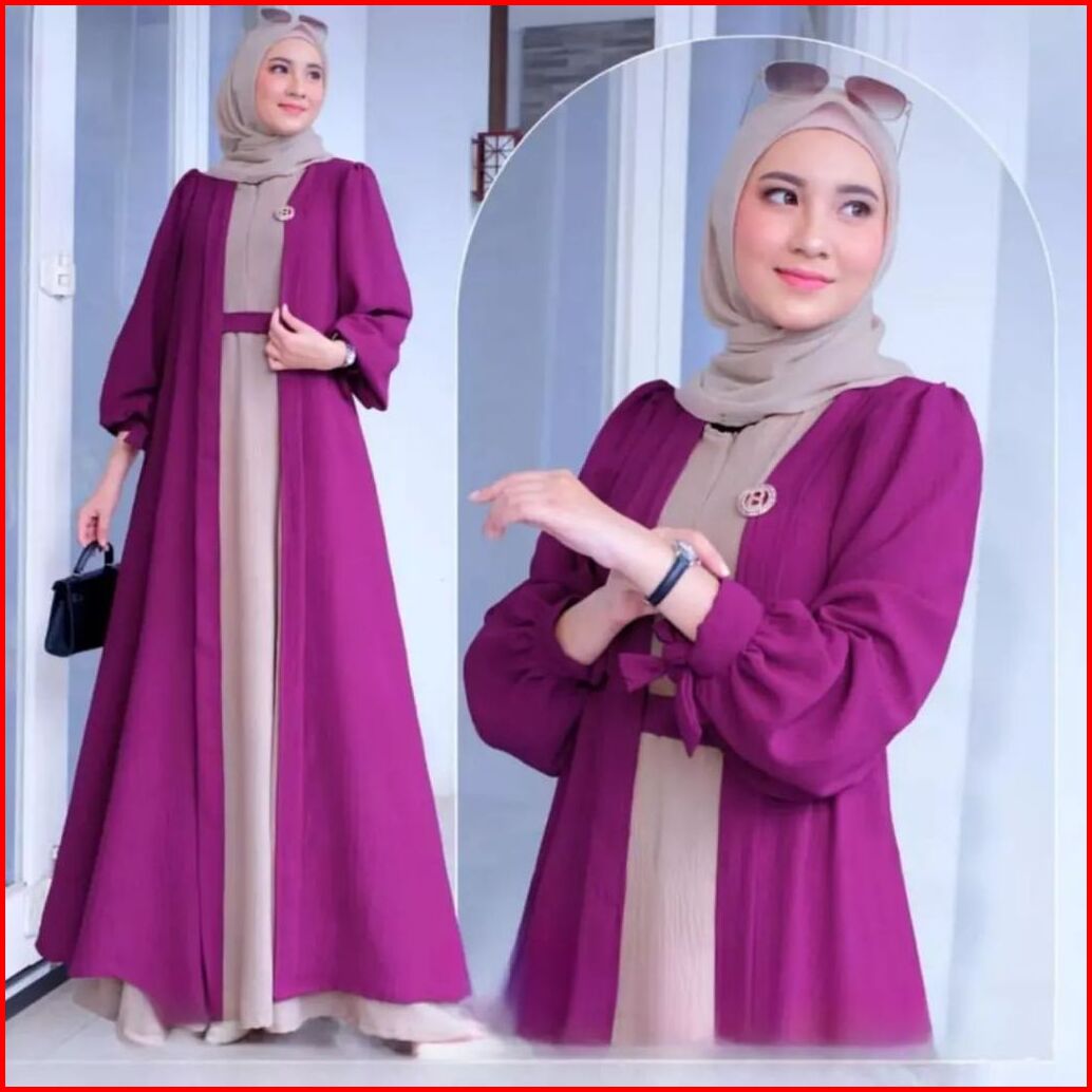 Elora Gamis Set Inner Outer Terpisah Gamis Polos Simple Elegant Aplikasi Ziper Depan Busui Gamis Abaya Set Iner Outer Bi