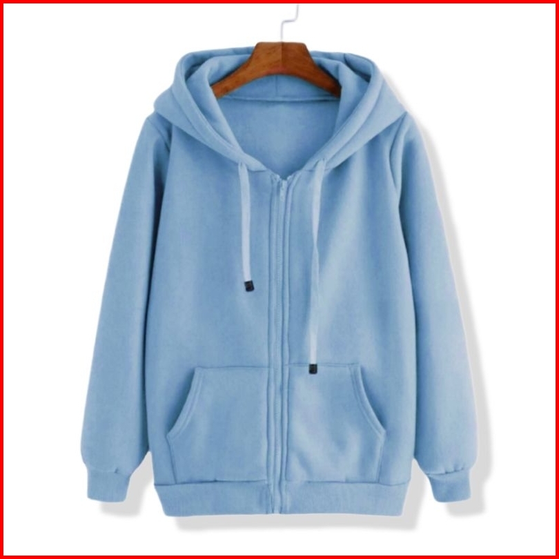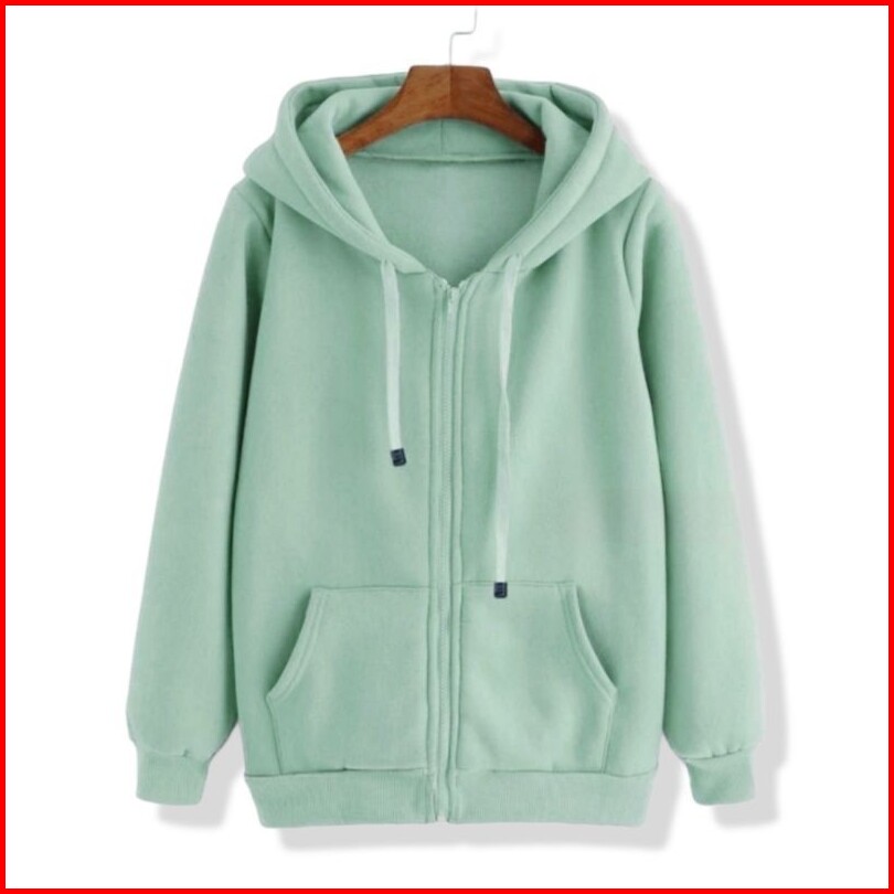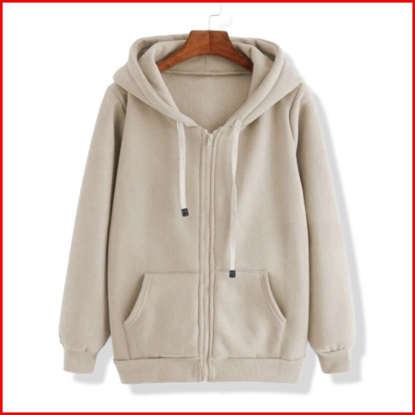Sweater Hoodie Zipper Pria Fleece Tebal Polos Cream