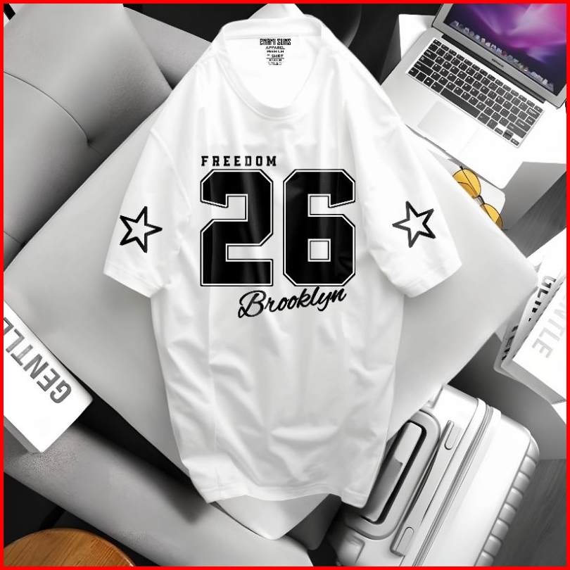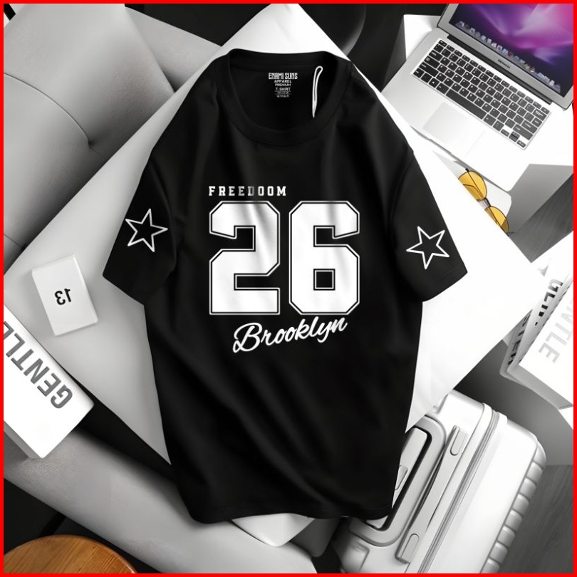 Enami Suns Kaos Distro Lengan Pendek 26 Freedom Bahan Cotton 24s Style Kasual Pria - Oblong