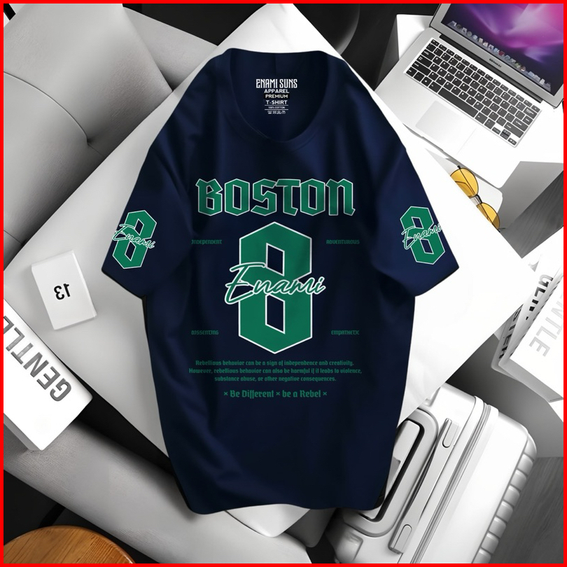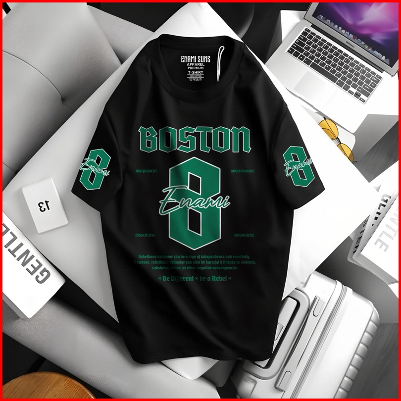 Enami Suns - Kaos Distro Lengan Pendek Boston Bahan Cotton 24s Style Kasual Untuk Pria - Oblong