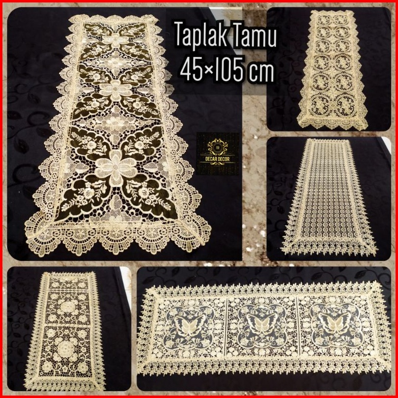Taplak Meja Loper Renda Bordir Import Mewah 45 105 Cm