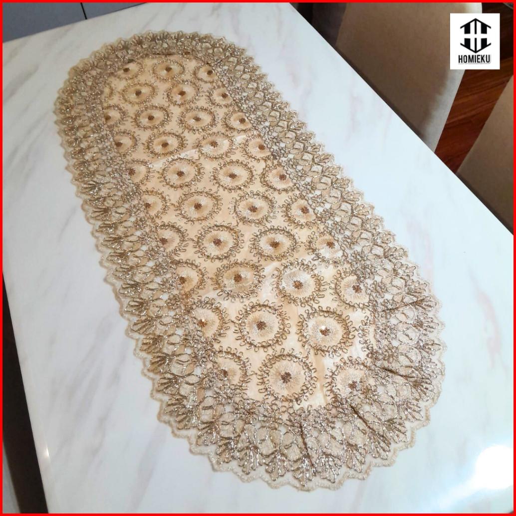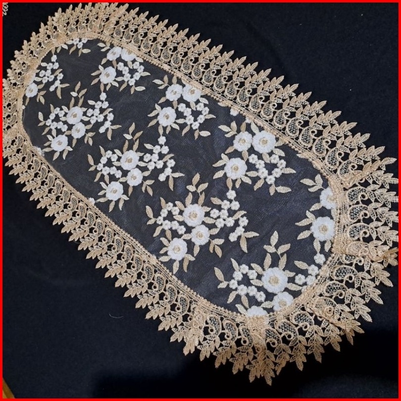 Taplak Meja Tamu Oval Bordir Segi Taplak Meja Tamu Brokat Renda Bordir Mewah 45 90 Cm