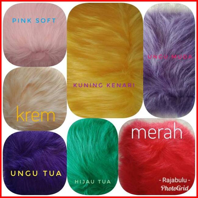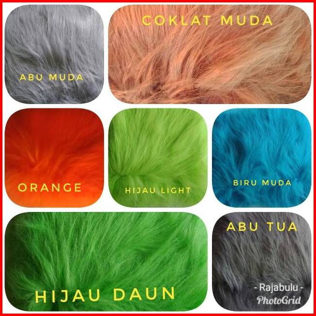 Hitam, Putih, Merah, Coklat muda, Kuning kenari, Kuning pooh, Pink soft, Pink fanta, Abu tua, Hijau stabilo, Ungu muda, Ungu tua, Orange, Krem, Warna lain, Abu muda silver