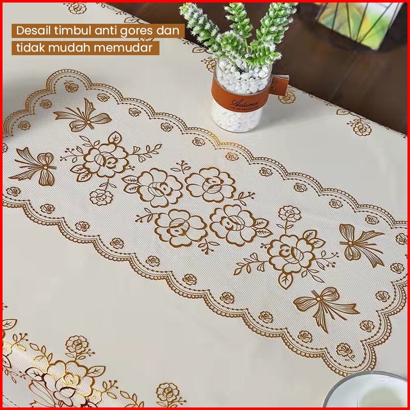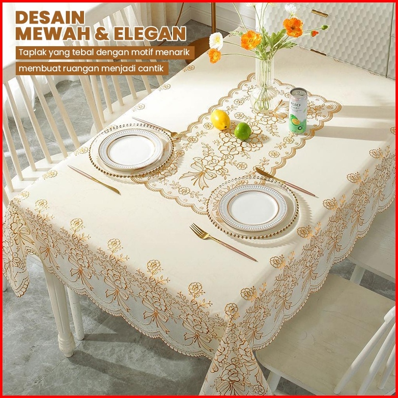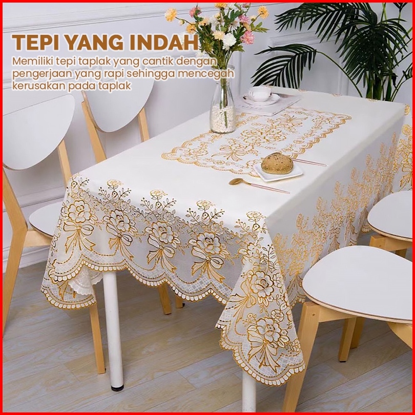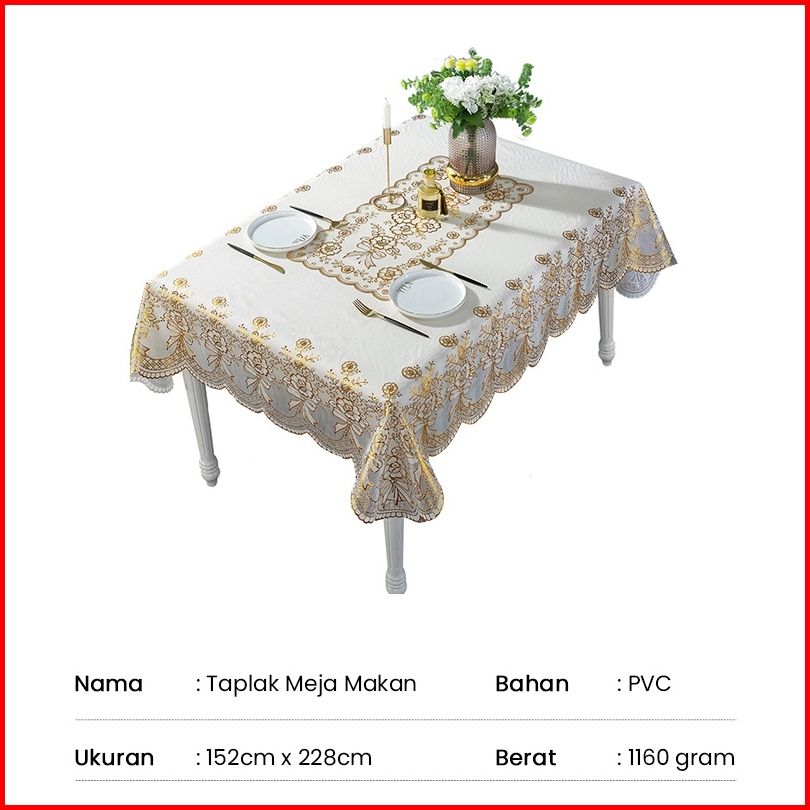 Taplak Meja Makan Persegi Motif Bunga 152x228cm Taplak Meja Makan Motif Bahan Pvc Tebal Premium - D46-c Livingdream
