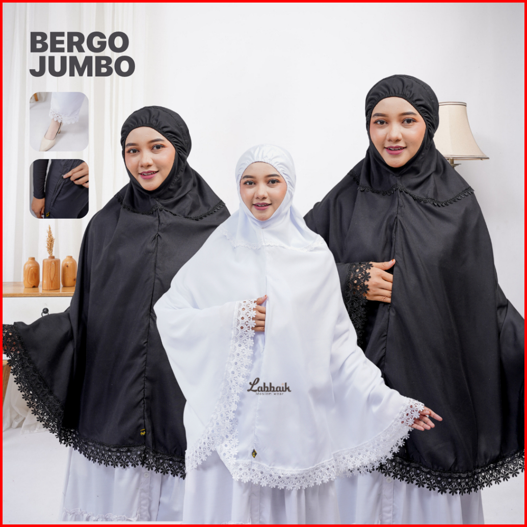 Labbaik - Kerudung Bergo Jumbo Renda Mewah Wanita Jilbab Syari Premium Perlengkapan Haji