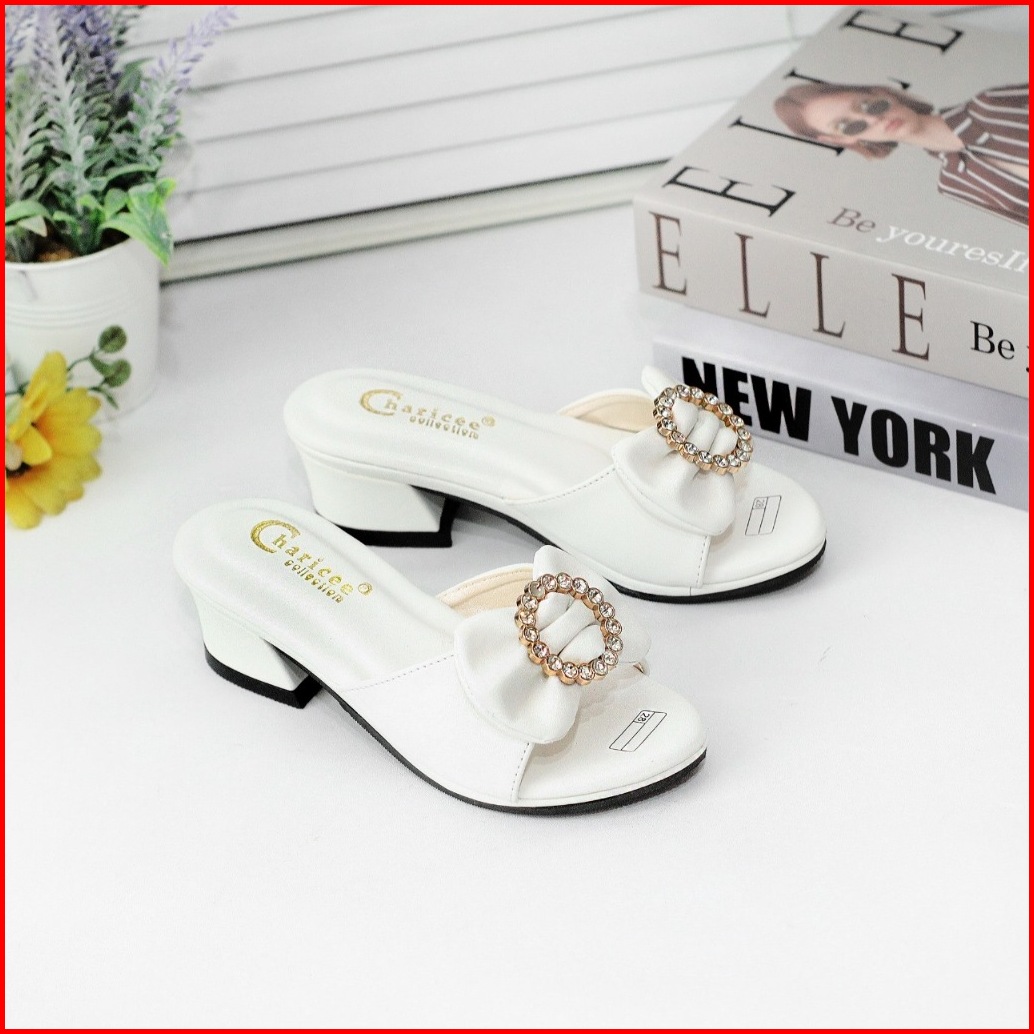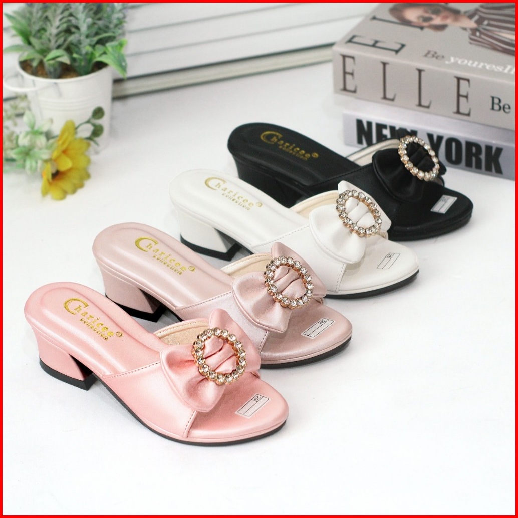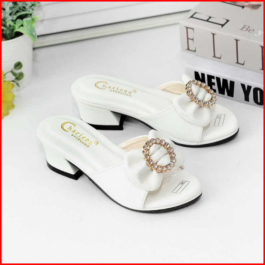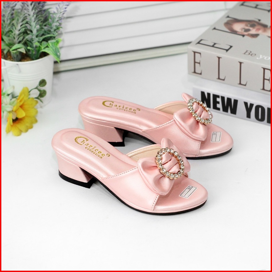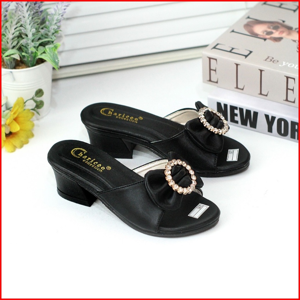 Sandal Pesta Anak Perempuan Hak 3cm Slop Empuk Sol Anti Slip Motif Pita Cute