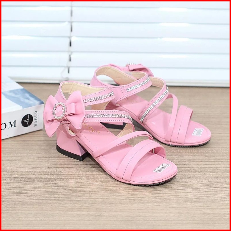 Sandal Pesta Anak Perempuan Hak 3cm Tali Permata Pita Aska-03