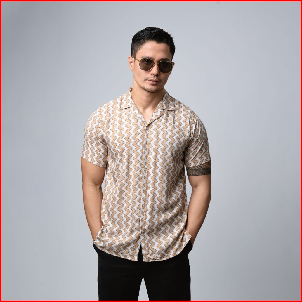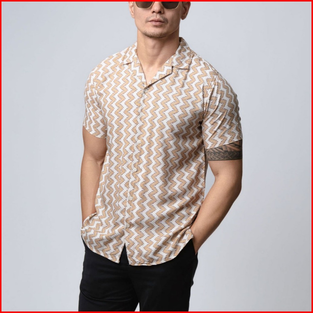 Vengoz Atasan Kemeja Pria Hawai Printing Slim Fit - Ripple Casual Shirt Ss
