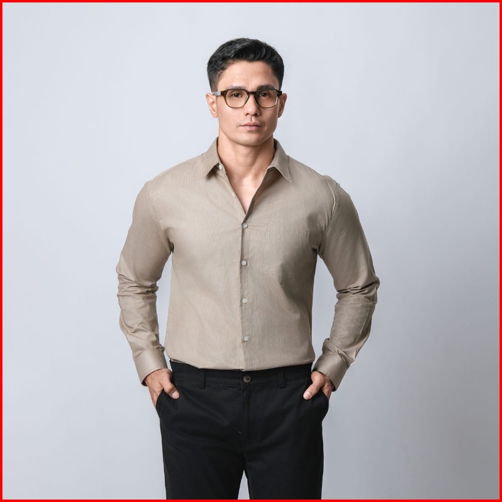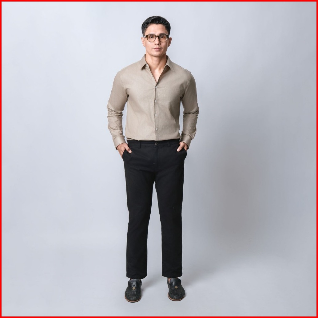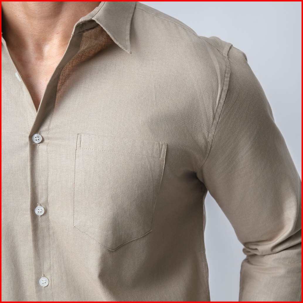 Vengoz Kemeja Pria Basic Rami Linen Look - Beige Ls