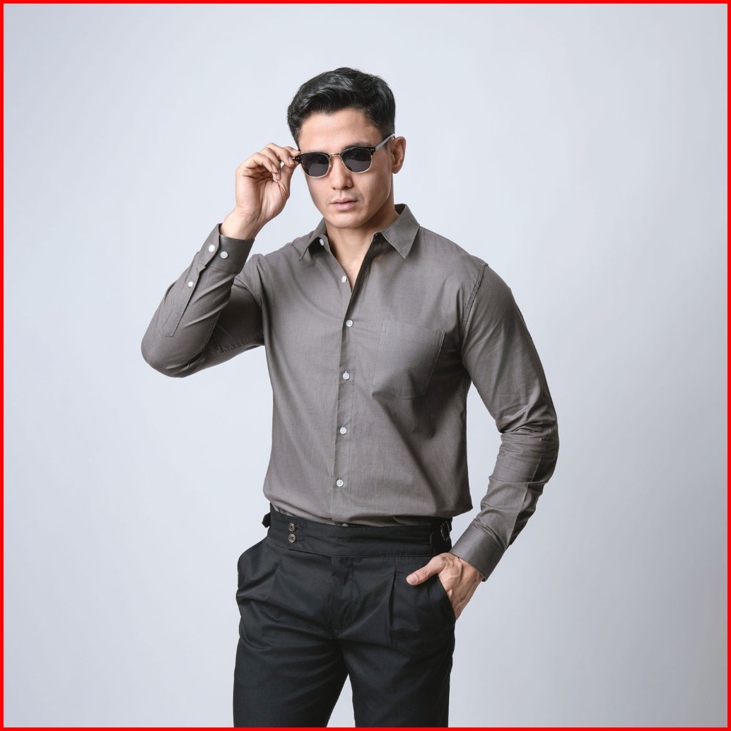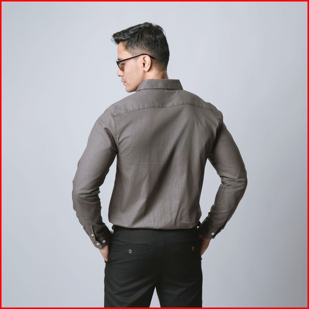 Vengoz Kemeja Pria Basic Rami Linen Look - Medium Grey Ls