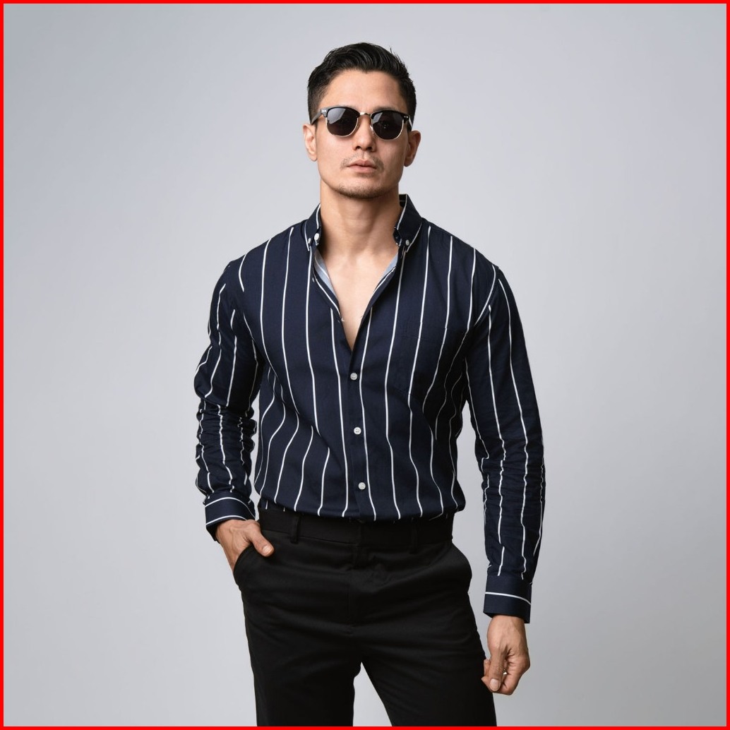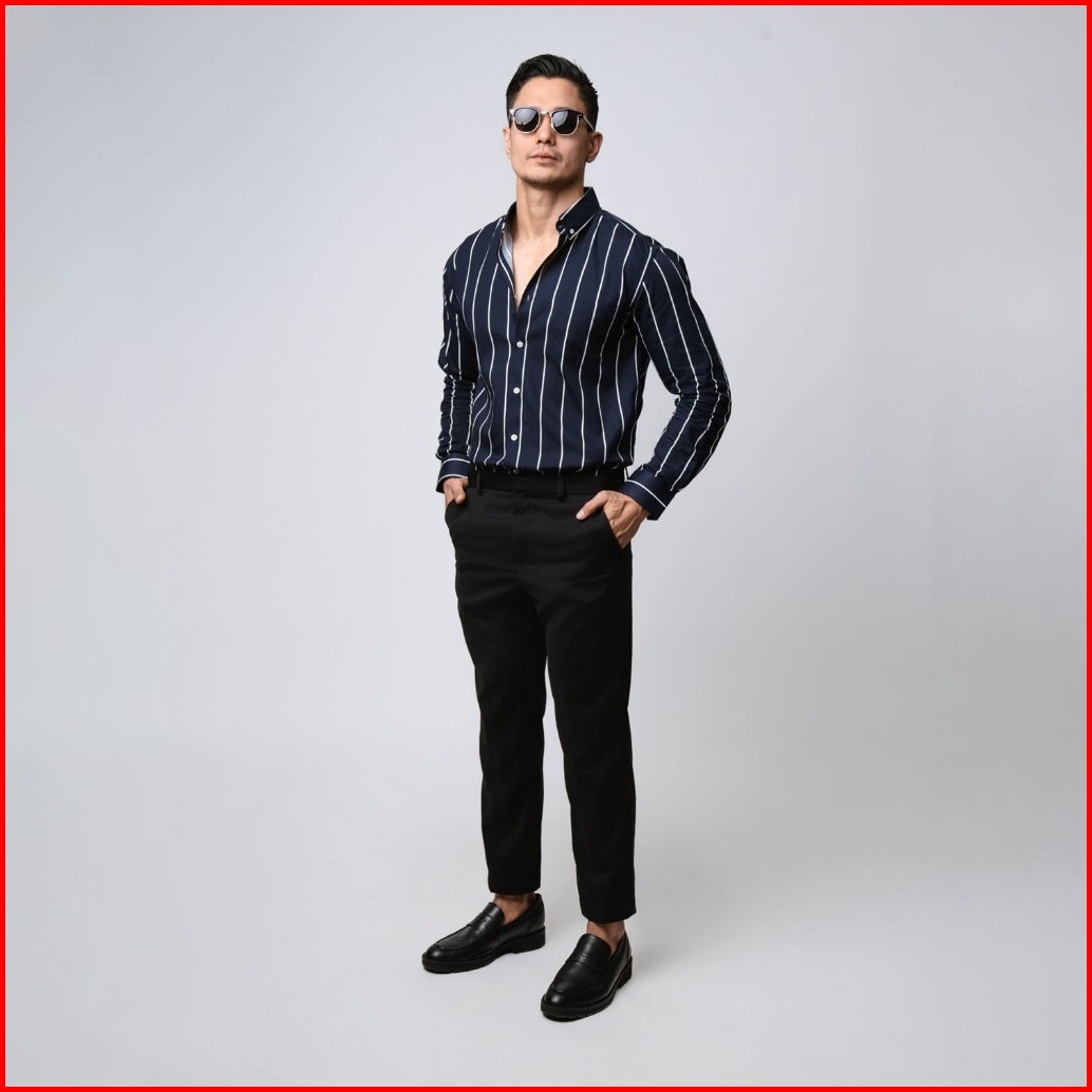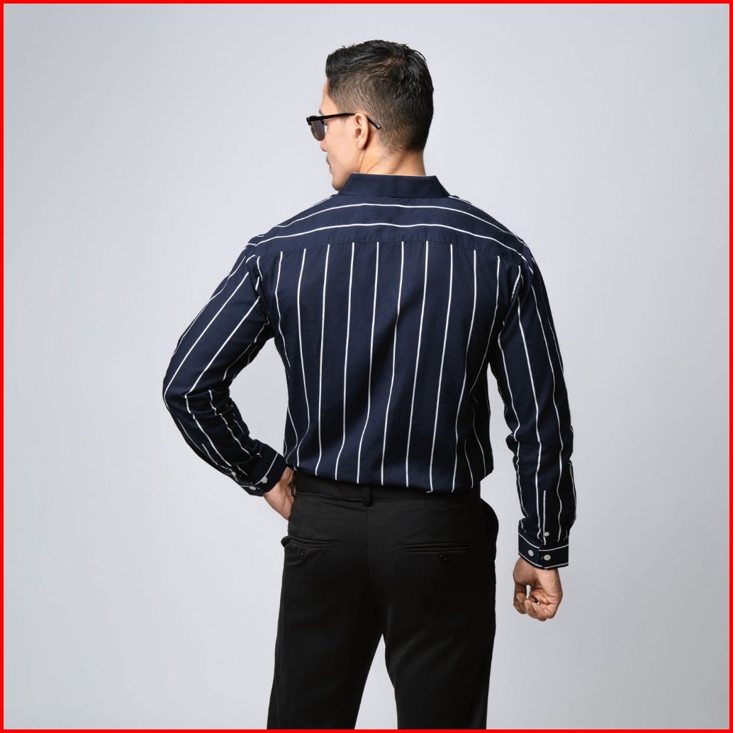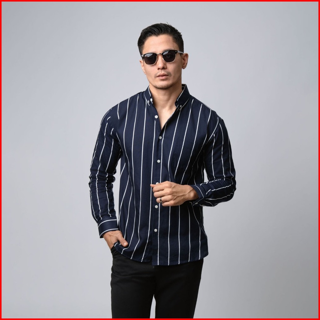 Vengoz Atasan Kemeja Pria Slim Fit - Vicente Stripe Navy Ls