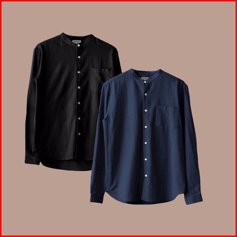New Kemeja Shanghai Panjang Polos Basic Black Navy