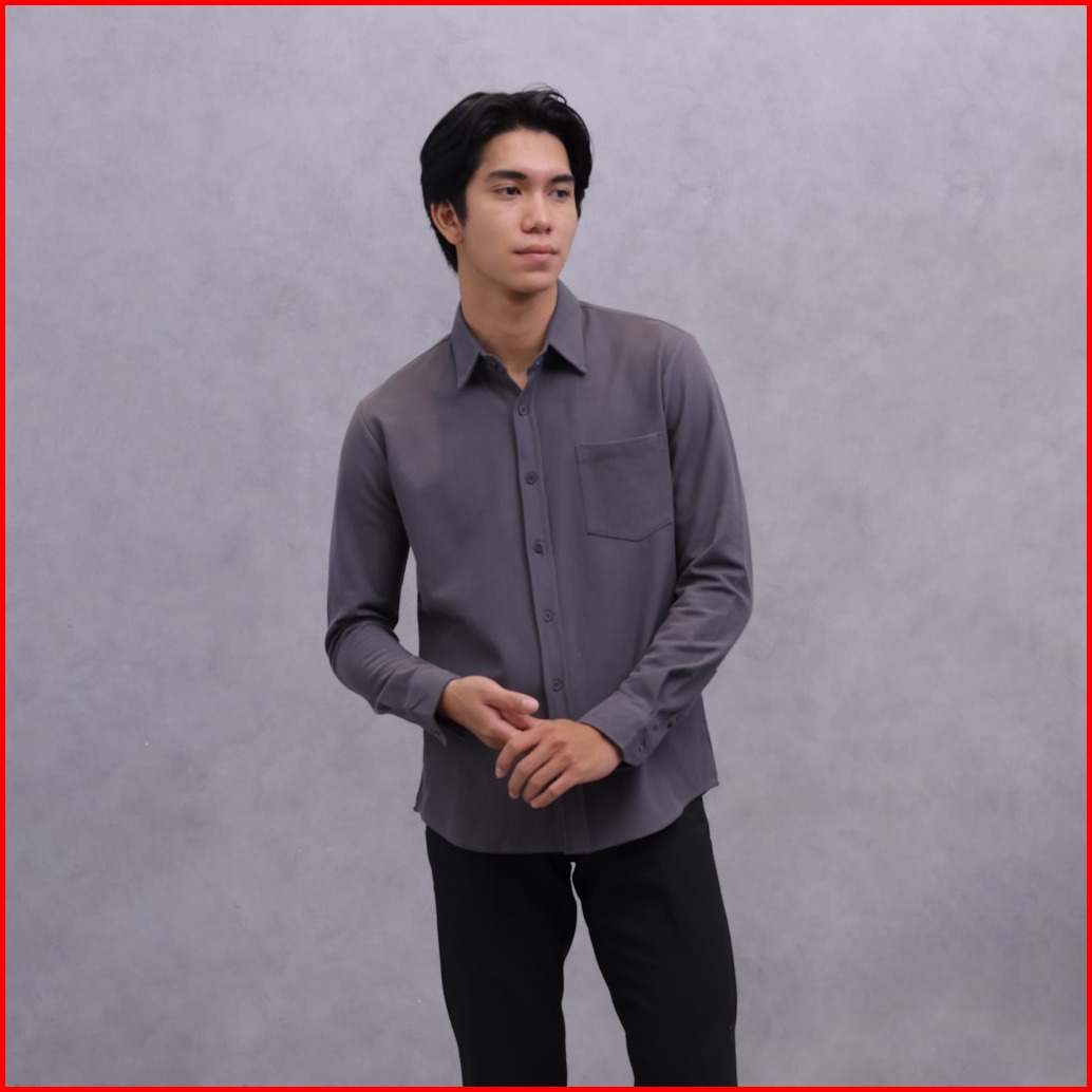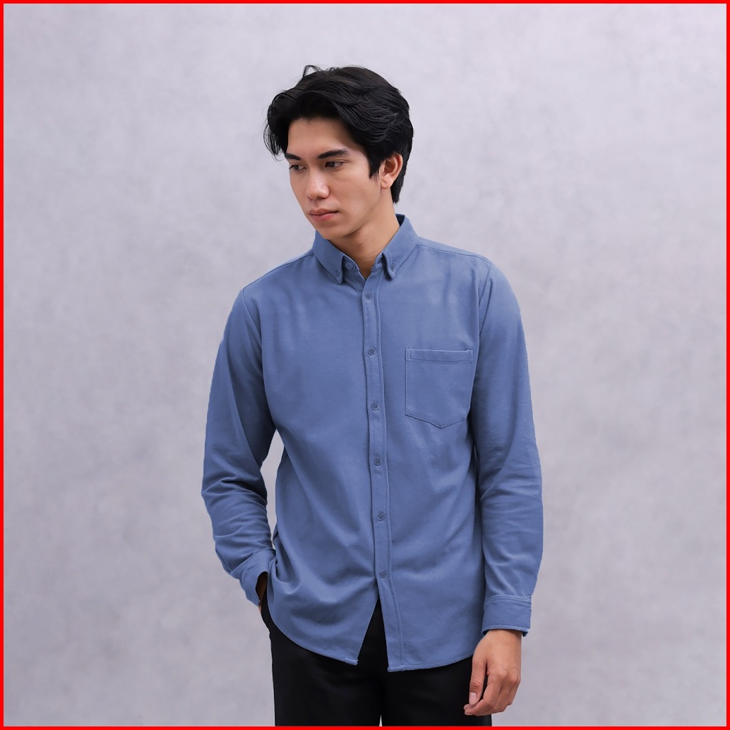 Wilmerstudios Kemeja Pria Pique Lengan Panjang Putih