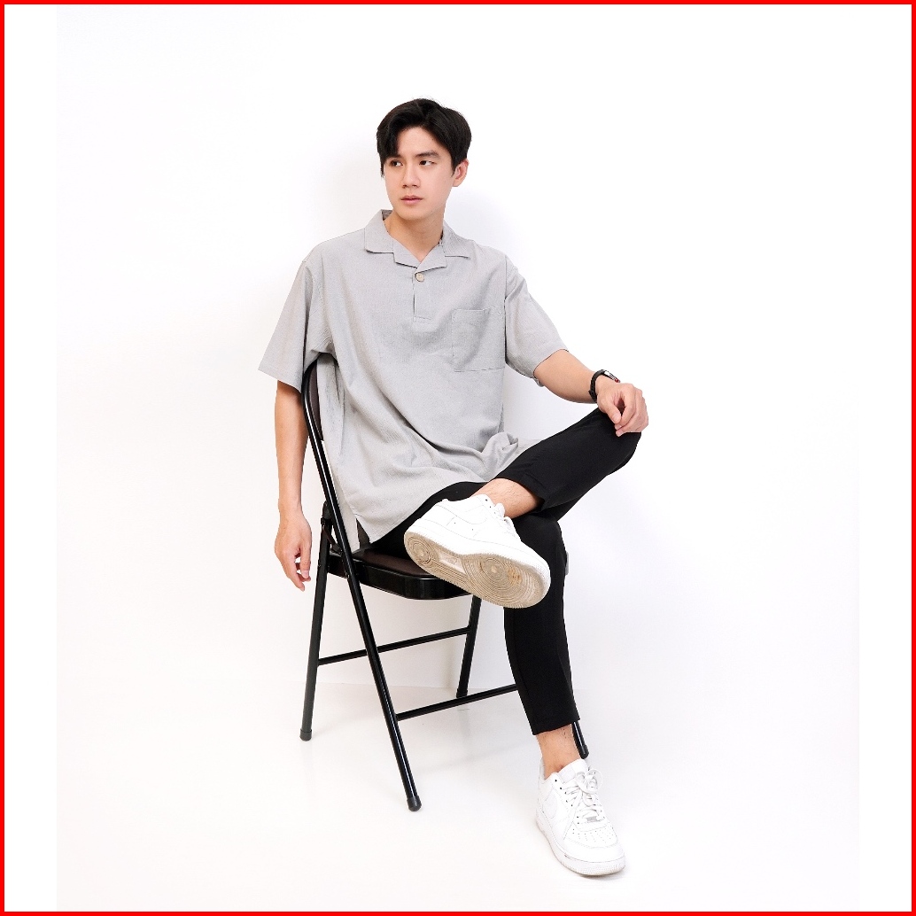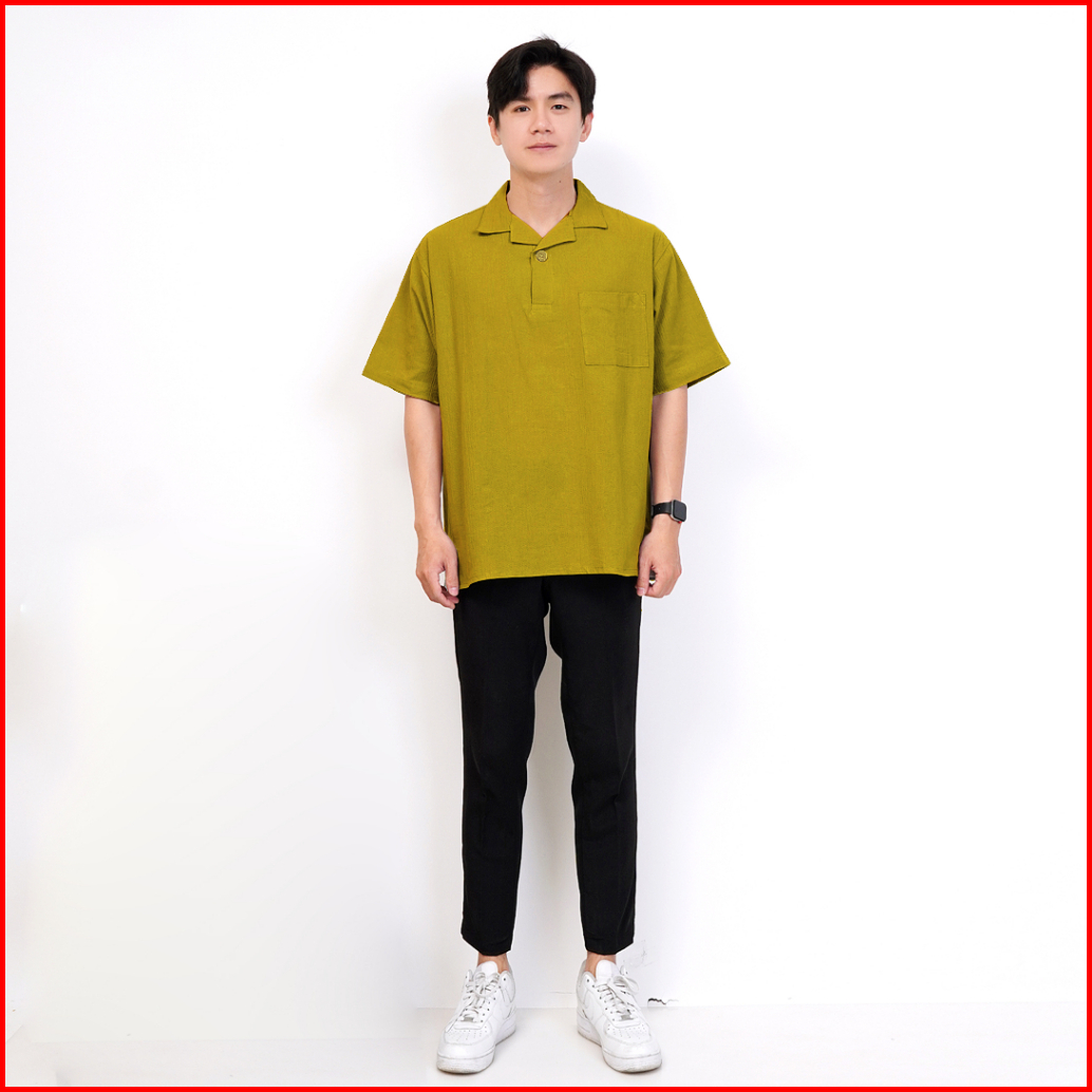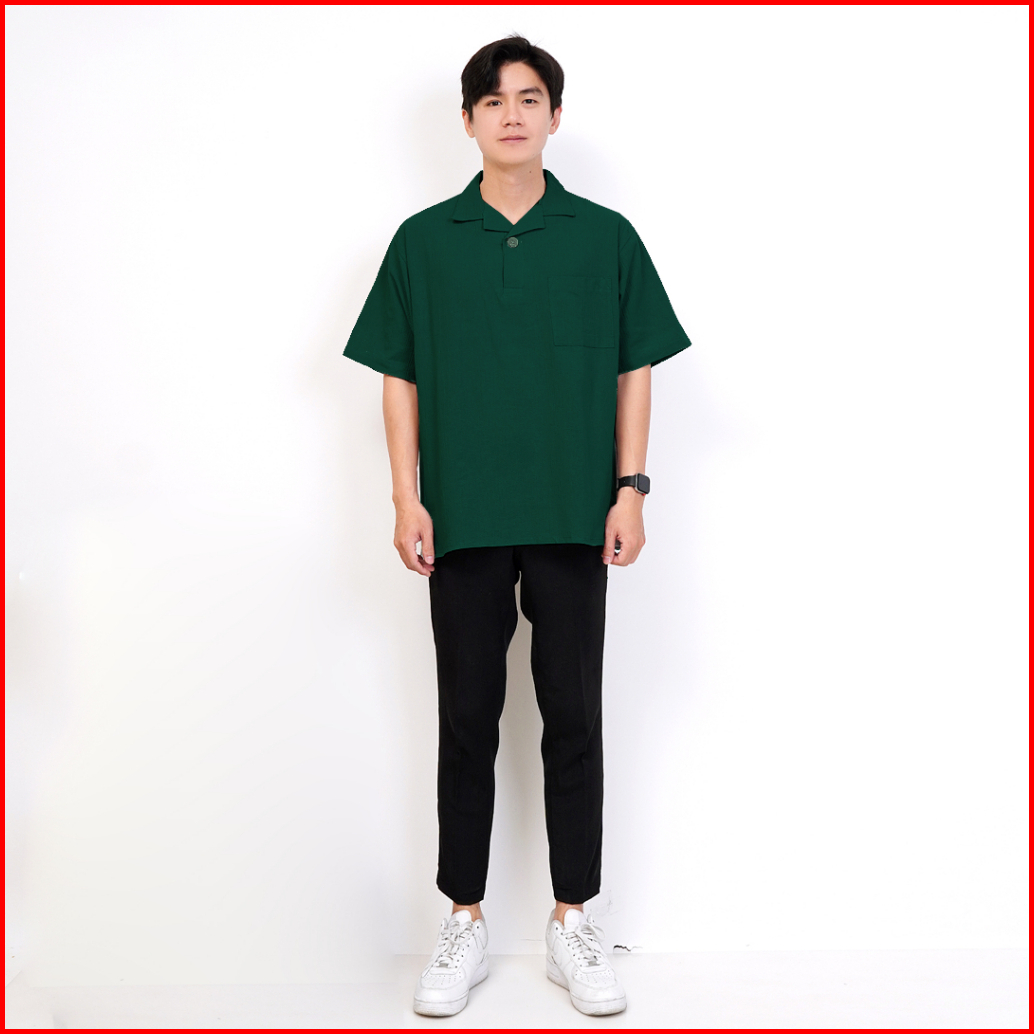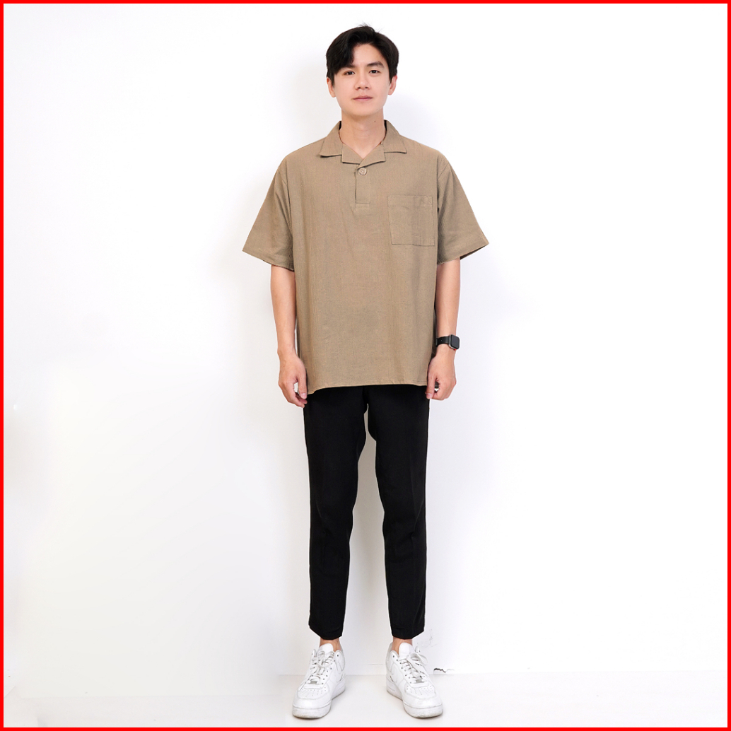 Polo Crinkle Boxy Fit Linen Pria Cuban Premium