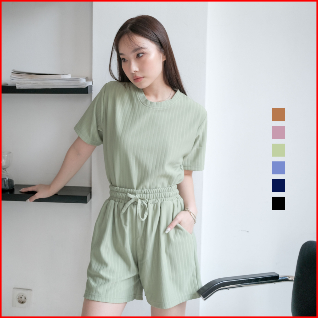 Sagi - Yumi Knit Set Setelan Kaos Celana Pendek Stretch Katun Polos Premium Wanita