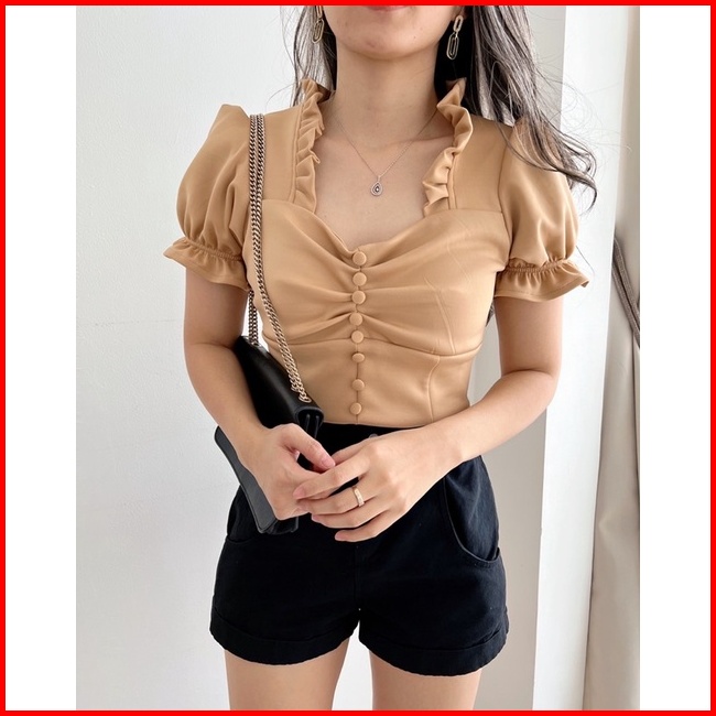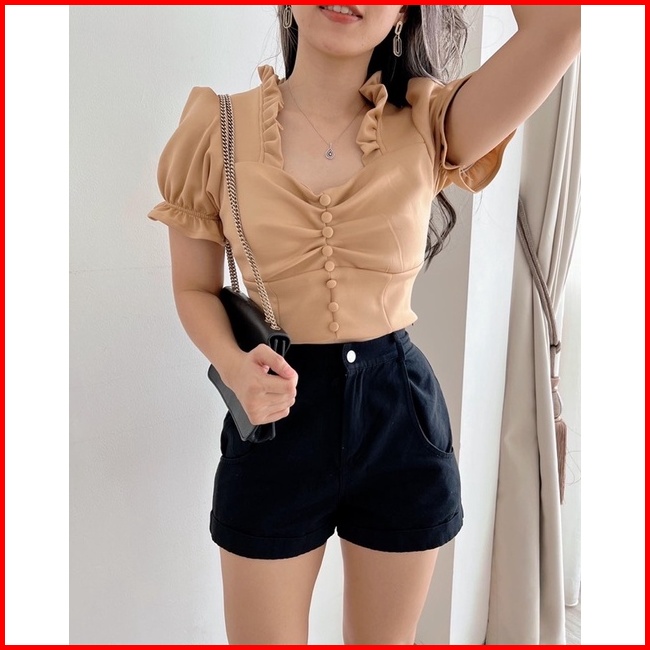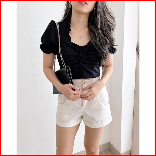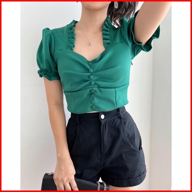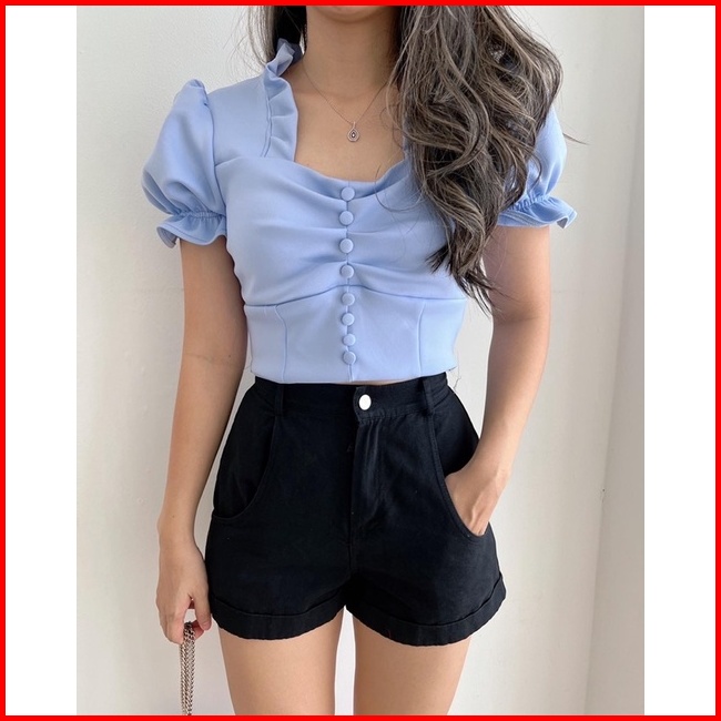 Herfit Emily Shirt Button Crop Atasan Crop 8883