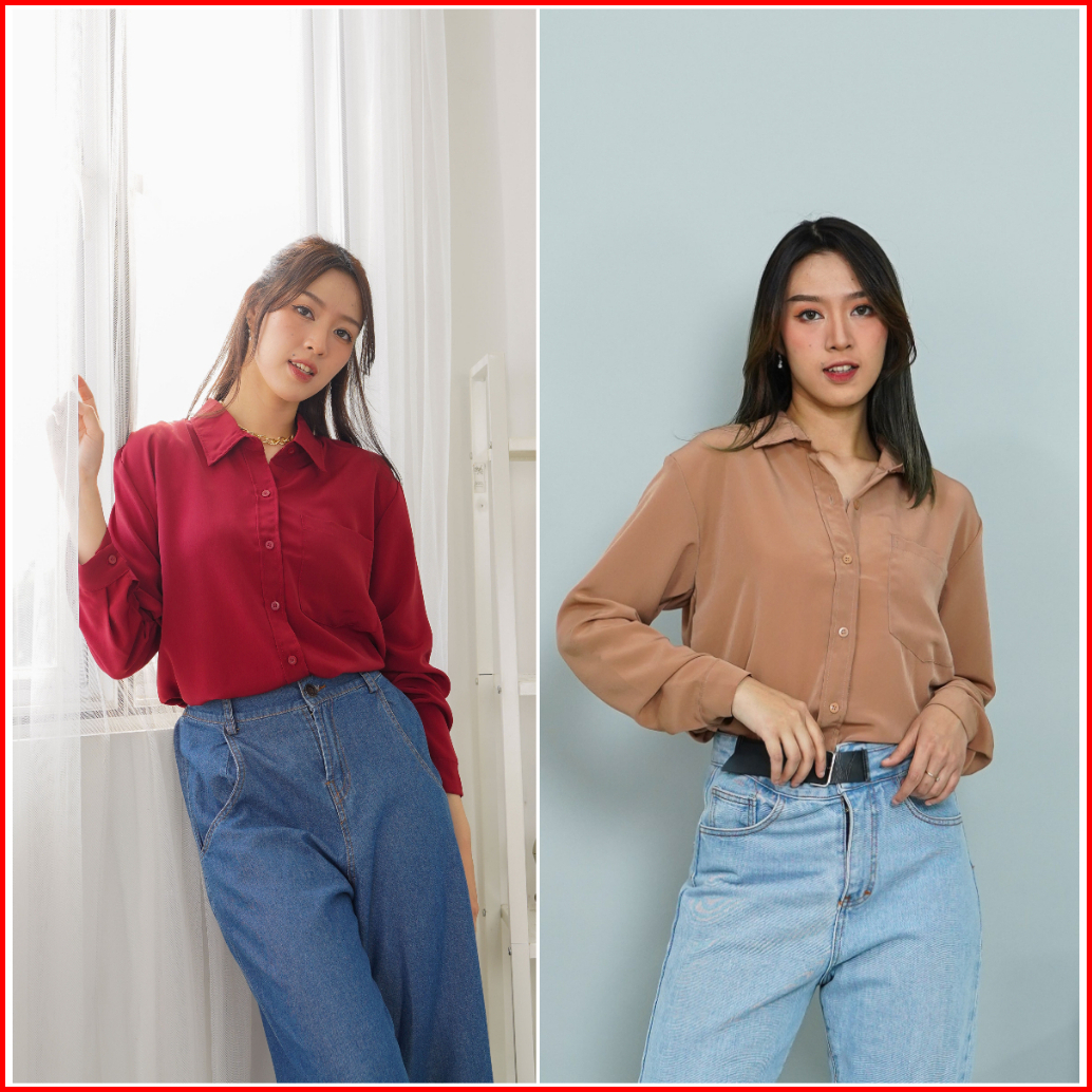 Eimi Kemeja Wanita Korean Style Ada Size Jumbo Kemeja Kerja Kuliah Ospek 2612