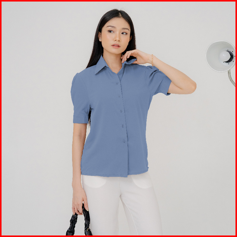 Sunflower Evelyn Shirt Kemeja Kerah Kasual Lengan Pendek Wanita