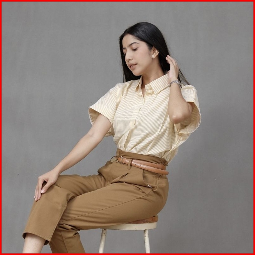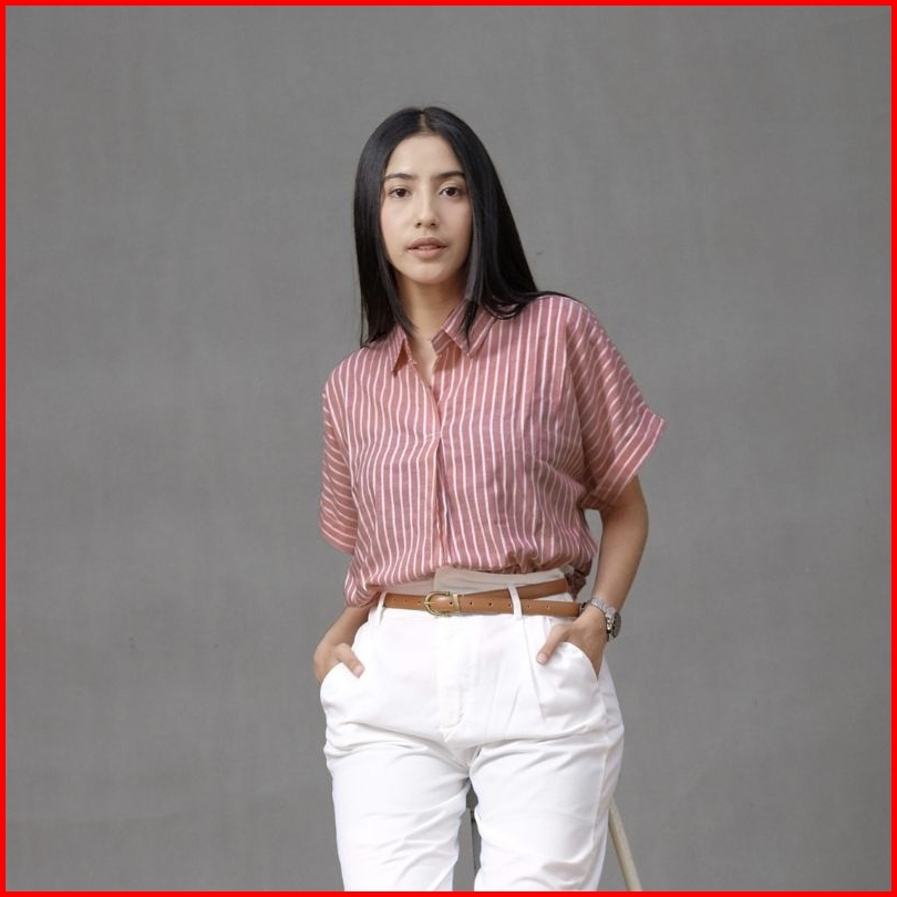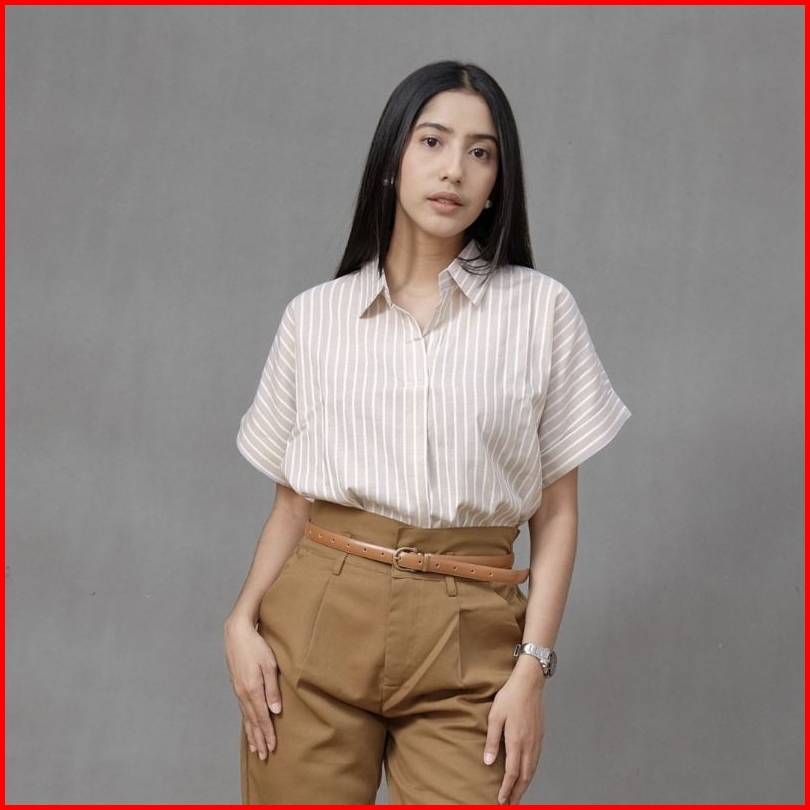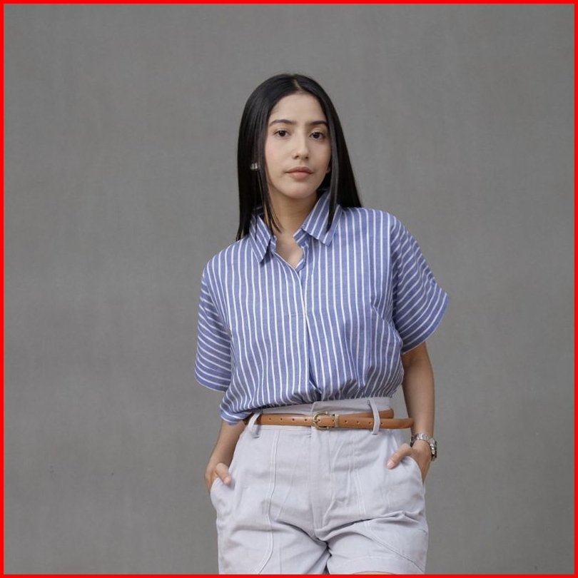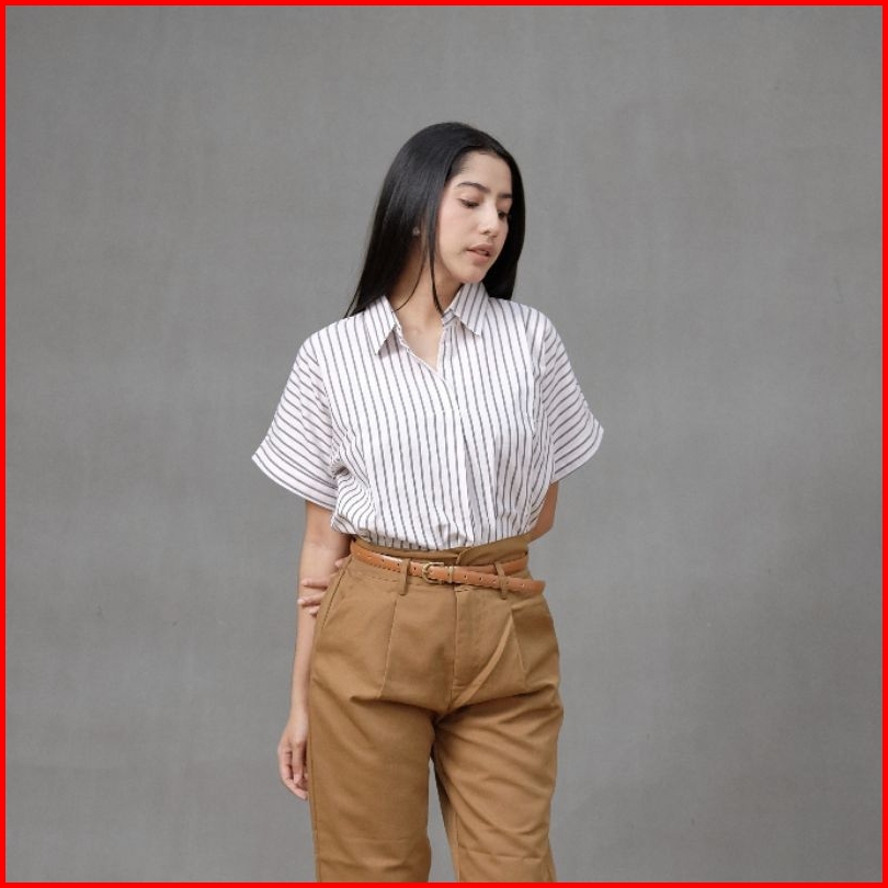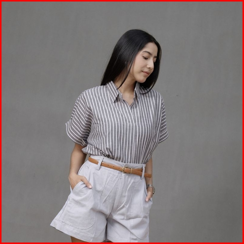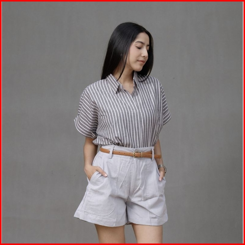 Kamari Top Kemeja Casual - Kemeja Korean Style V - Neck Oversized - Kemeja Cotton