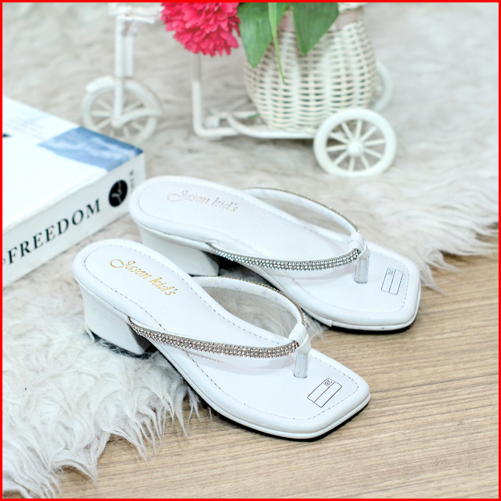 Sandal Jepit Pesta Anak Perempuan Glossy Hak 3cm Sol Karet Anti Slip