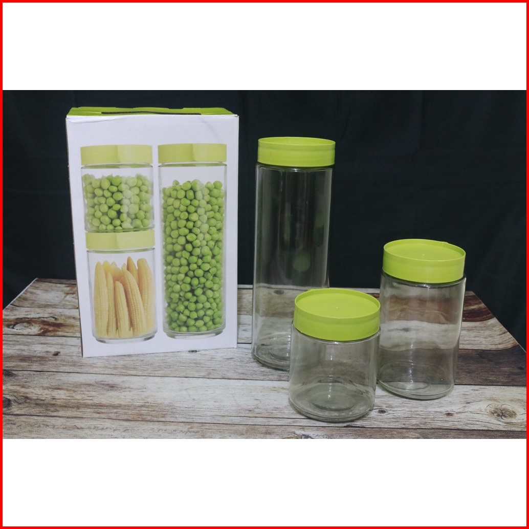 Toples Set 3 Kaca Super Tebal Toples Premium High Quality Aesthetic Tempat Cemilan Kue Kering Toples Kue Lebaran Toples