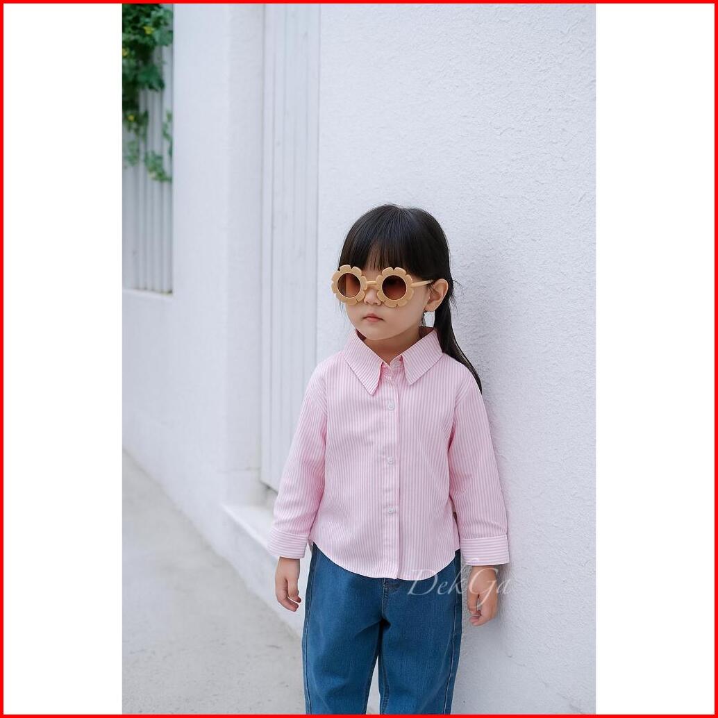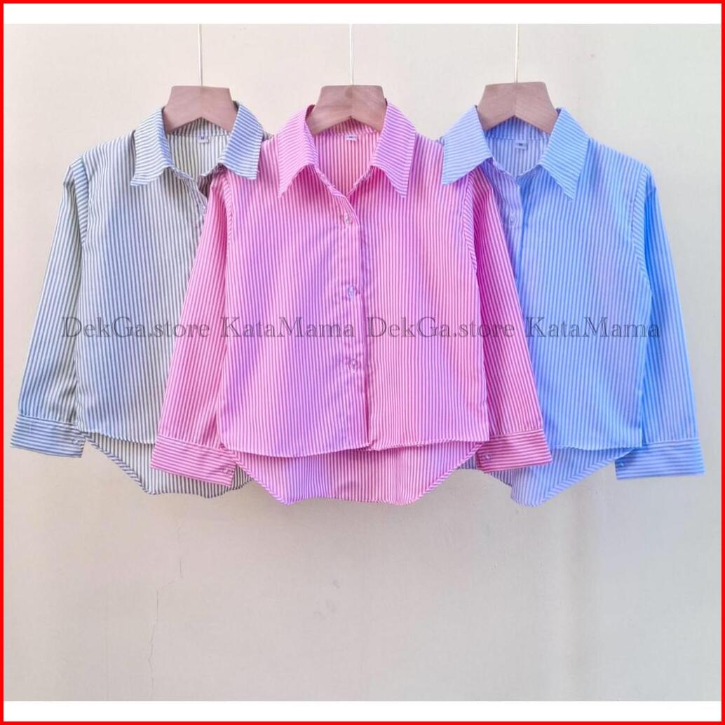 Kemeja Anak Oversize Motif Salur Striped Atasan Kemeja Anak Perempuan 2-12tahun
