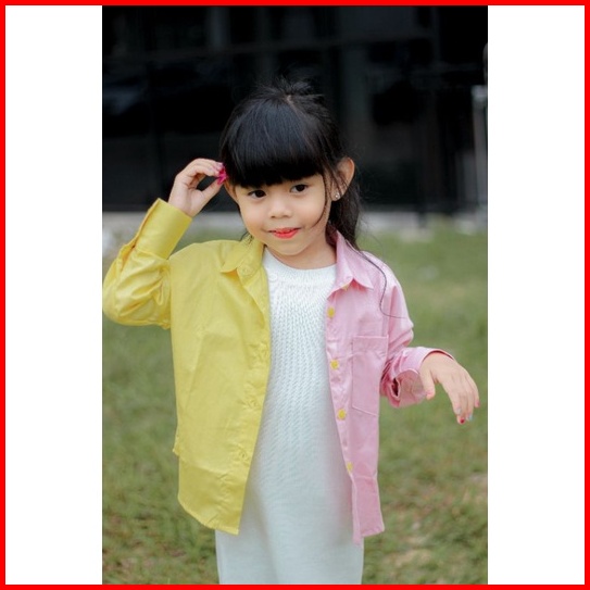 Keenanthi Two Tone Shirt Kids Kemeja Anak Kemeja Katun Anak Kemeja Pink