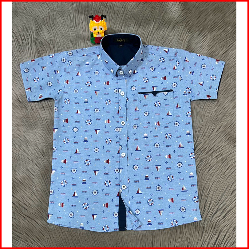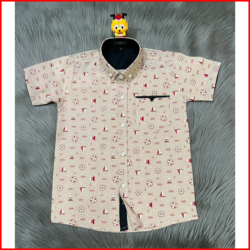 Kemeja Motif Anak Bahan Katun Kemeja Lengan Pendek Usia 3 - 14 Tahun